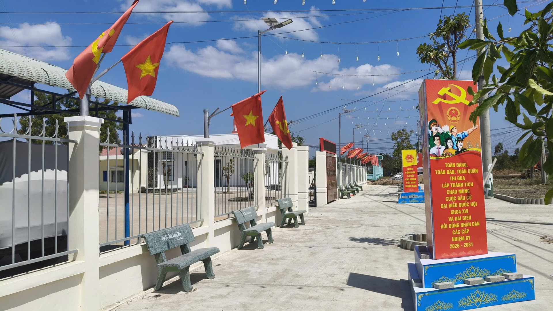 Tại các nhà văn hóa thôn, điểm sinh hoạt cộng đồng, các bảng tin và pano tuyên truyền được dựng lên ngay ngắn, giúp người dân dễ dàng nắm bắt thông tin về cuộc bầu cử. Cán bộ địa phương cùng các tổ chức đoàn thể tích cực vận động nhân dân treo cờ Tổ quốc, tham gia dọn dẹp vệ sinh, chỉnh trang đường làng ngõ xóm. Nhờ đó, diện mạo các khu dân cư vùng biên cũng trở nên khang trang, rực rỡ hơn trong những ngày cận kề bầu cử.