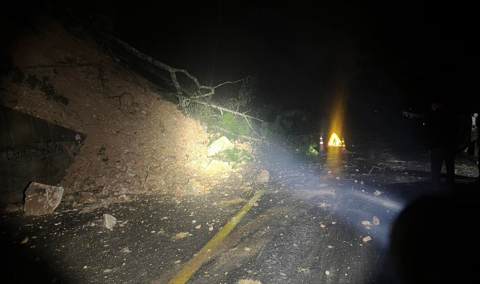 Trước đó, vào tối 28-10, tại khu vực cầu Treo Km262+500 (đoạn qua phường Xuân Trường) xảy ra sạt lở đất đá nghiêm trọng. Một số cây thông bị bật gốc, đổ tràn xuống lòng đường, tiềm ẩn nguy cơ mất an toàn cho người và phương tiện.