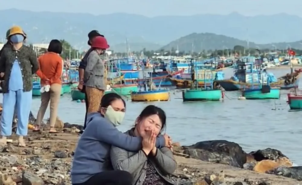 Người vợ của ông S và gia đình có mặt ở khu vực được xem là ông S bị mất tích khóc ngất gọi tên chồng.