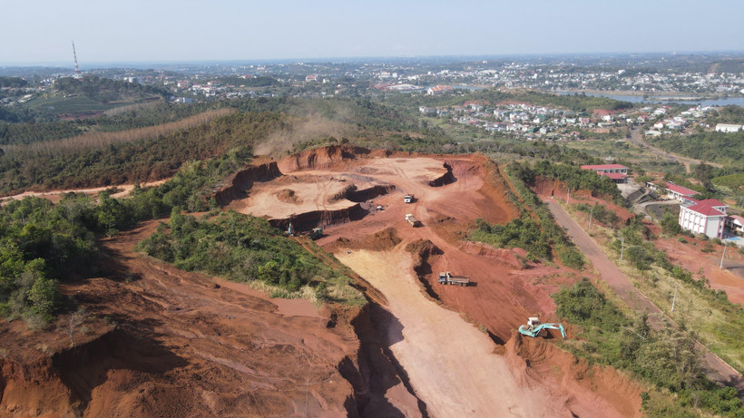 Khai thác đất san lấp để thi công công trình tại mỏ đất Đắk Nút B, phường Bắc Gia Nghĩa, tỉnh Lâm Đồng. (Ảnh: Hưng Thịnh/TTXVN)