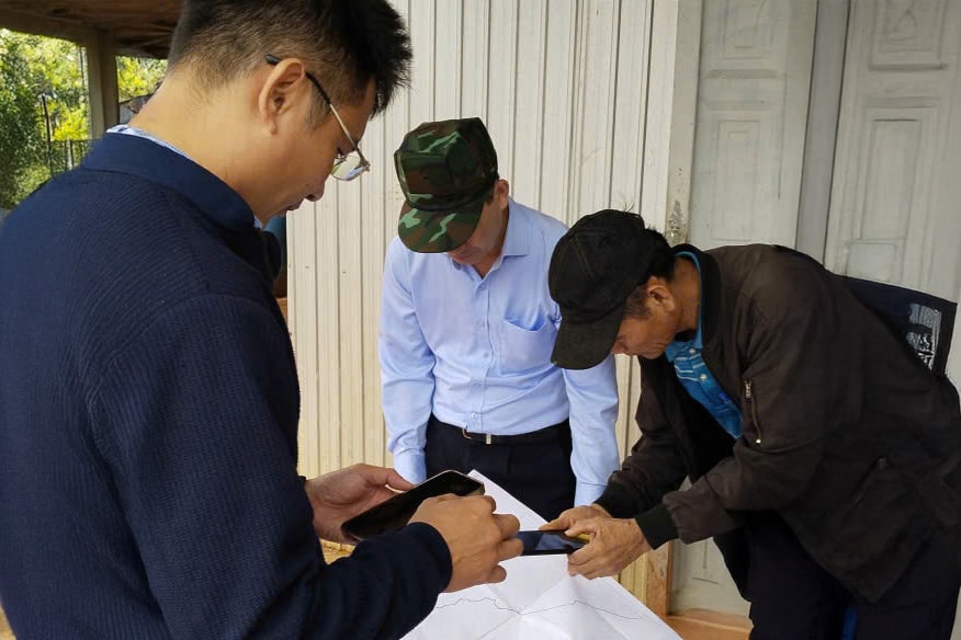 Các cán bộ của Trung tâm Phát triển Quỹ đất số 2 xuống địa bàn các xã để thực hiện công tác kiểm kê tài sản