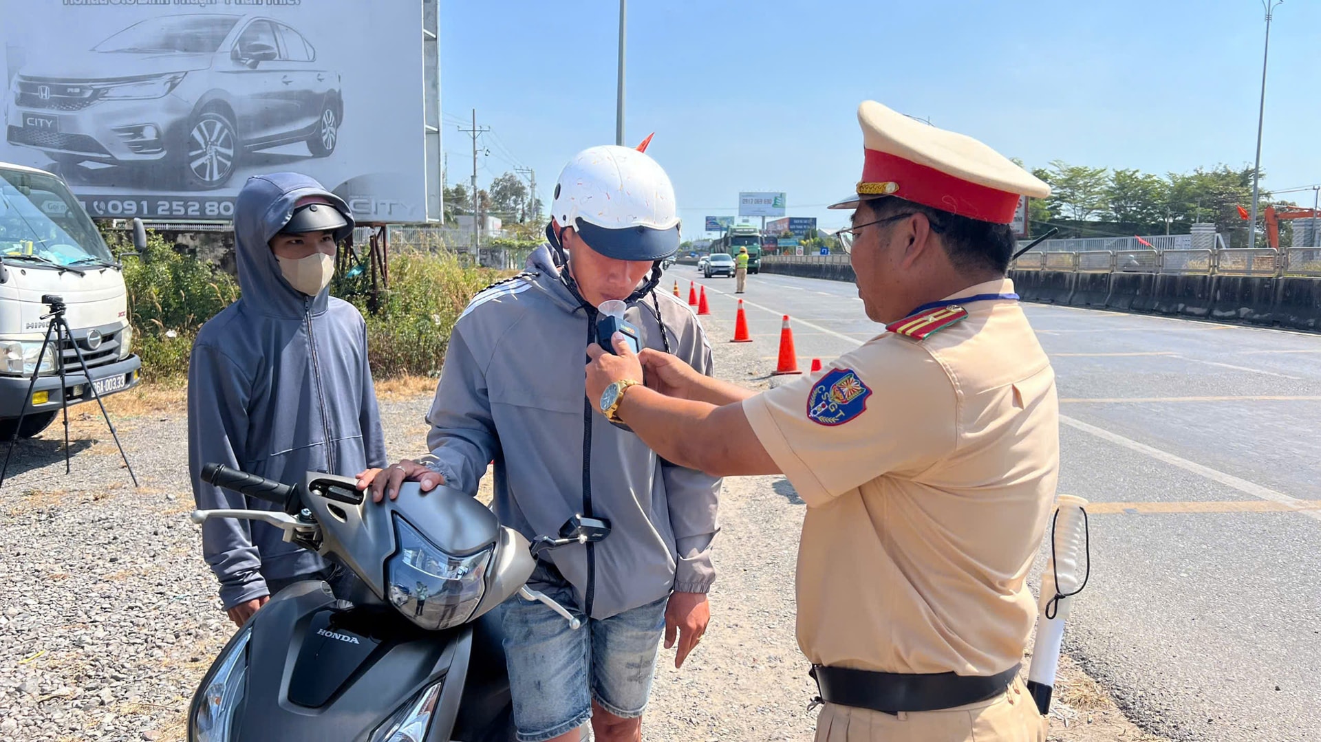 Lực lượng CSGT Lâm Đồng kiểm tra nồng độ cồn người điều khiển phương tiện