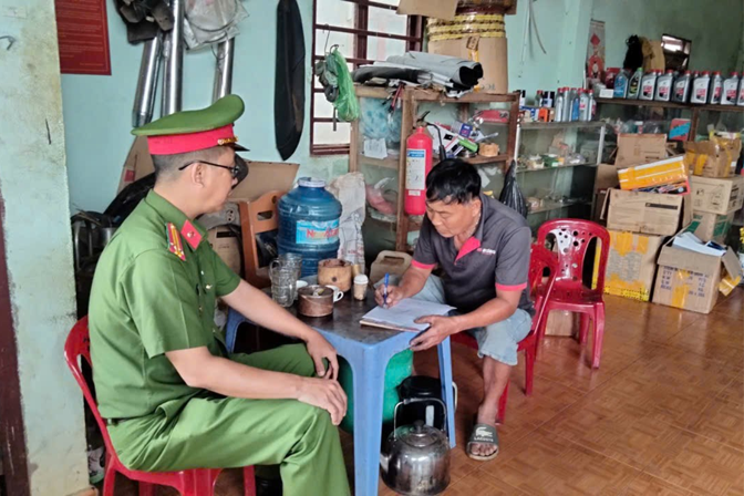 Cán bộ Công an xã Phúc Thọ Lâm Hà, tỉnh Lâm Đồng vận động Nhân dân ký cam kết