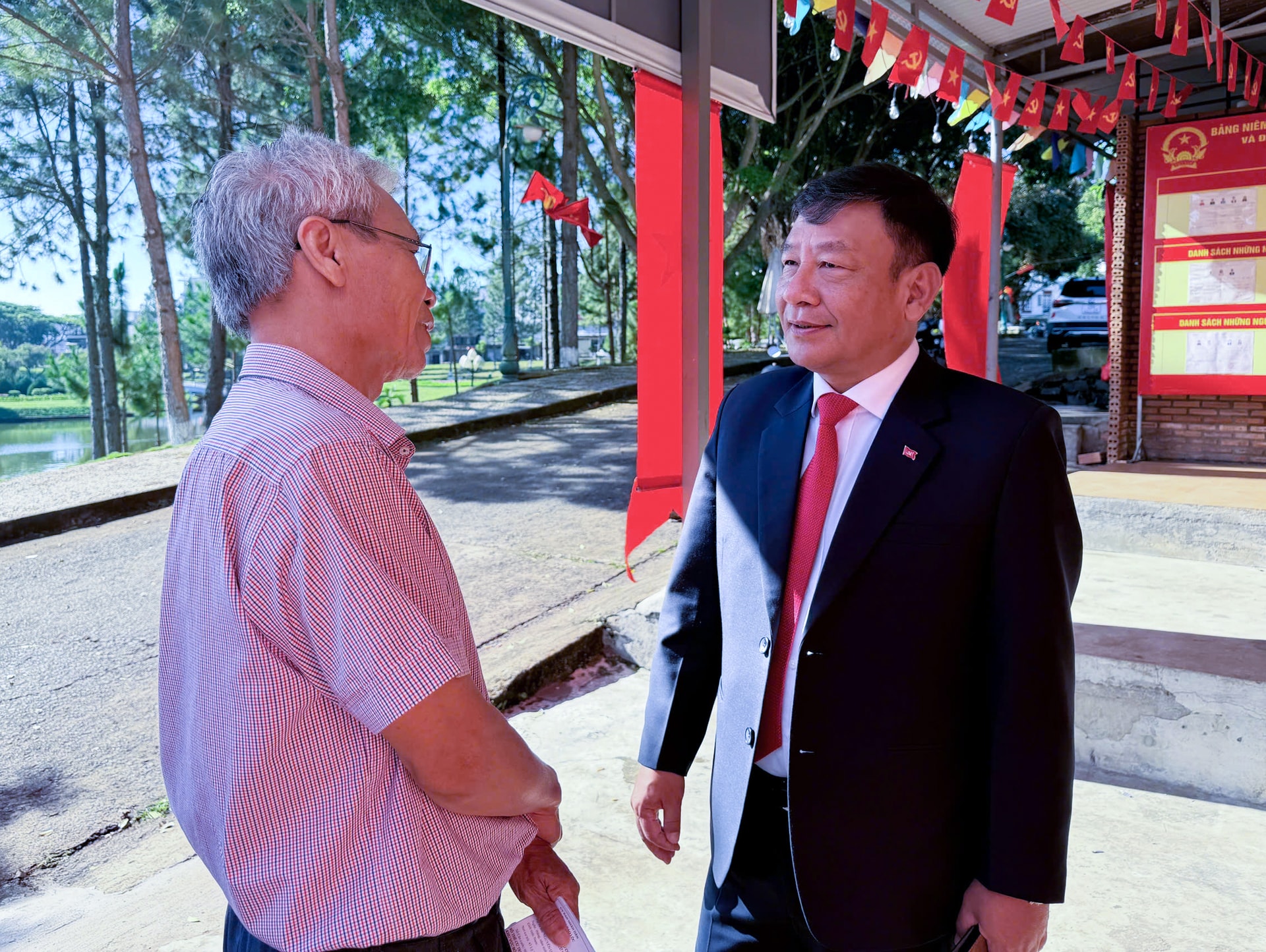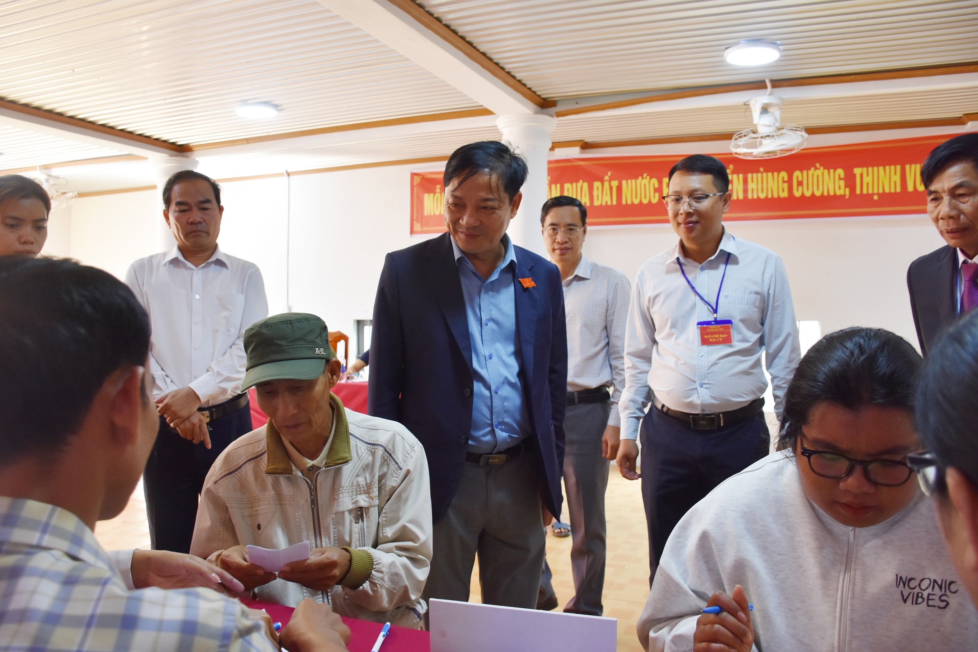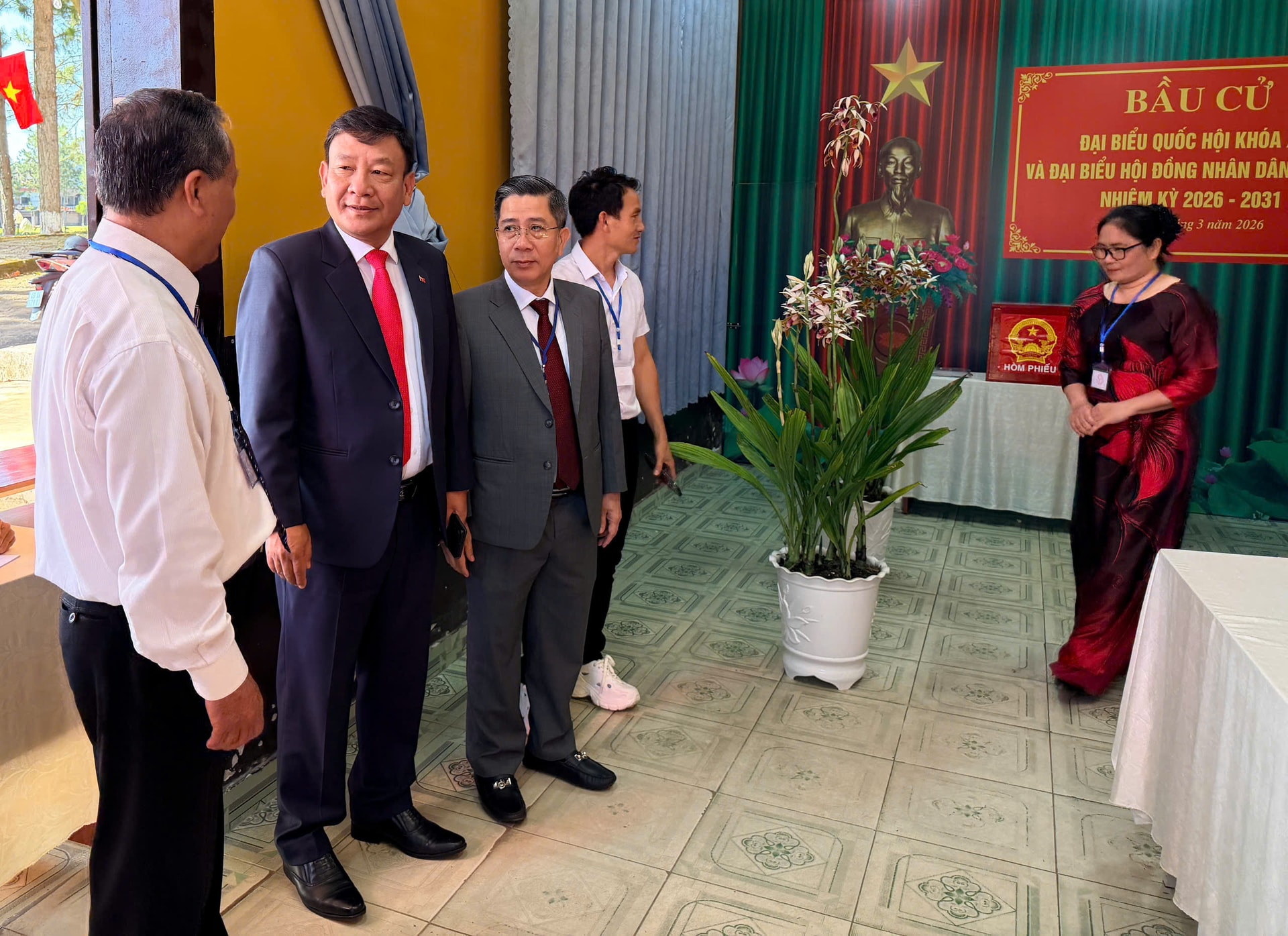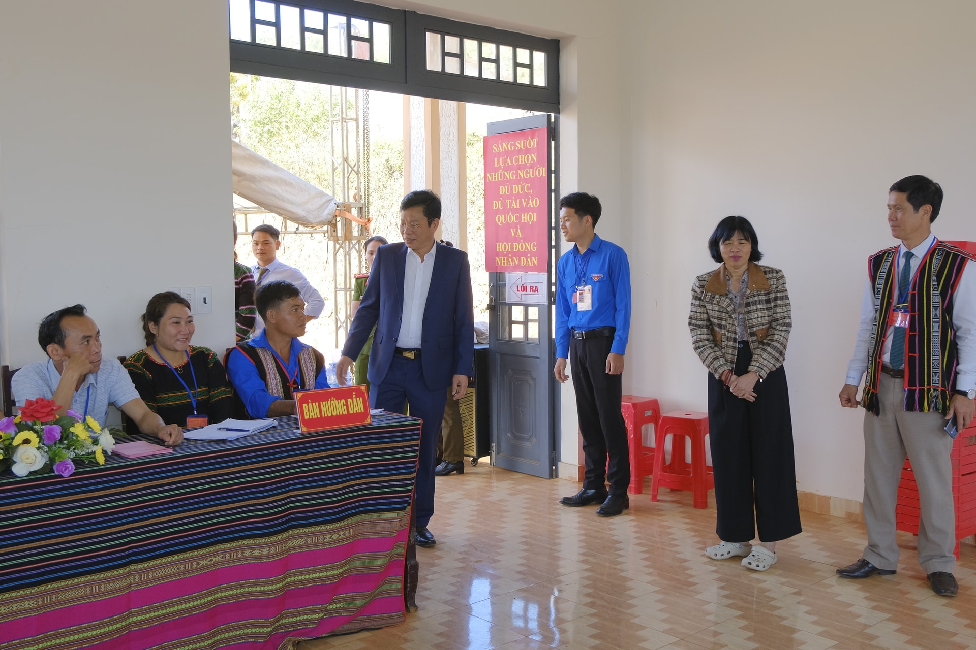 Đồng chí Lưu Văn Trung, Phó Bí thư Tỉnh ủy, Chủ tịch HĐND tỉnh, Chủ tịch Ủy ban Bầu cử tỉnh Lâm Đồng đi kiểm tra công tác tổ chức bỏ phiếu bầu cử tại xã biên giới Quảng Trực