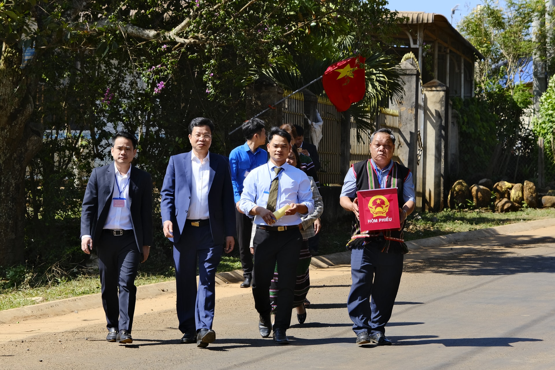 Cử tri bon Bu Dách (xã Quảng Tín) tới địa điểm bỏ phiếu thực hiện quyền công dân