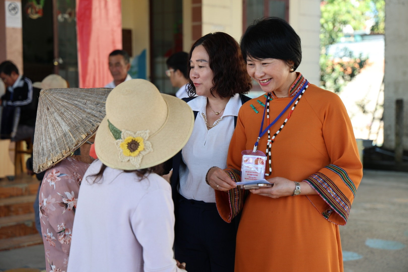 Đồng chí Phạm Thị Phúc, Phó Bí thư Tỉnh ủy, Chủ tịch Ủy ban MTTQ Việt Nam tỉnh Lâm Đồng kiểm tra công tác bầu cử tại thôn Đam Bao, Đơn vị bầu cử số 2, xã Phú Sơn Lâm Hà