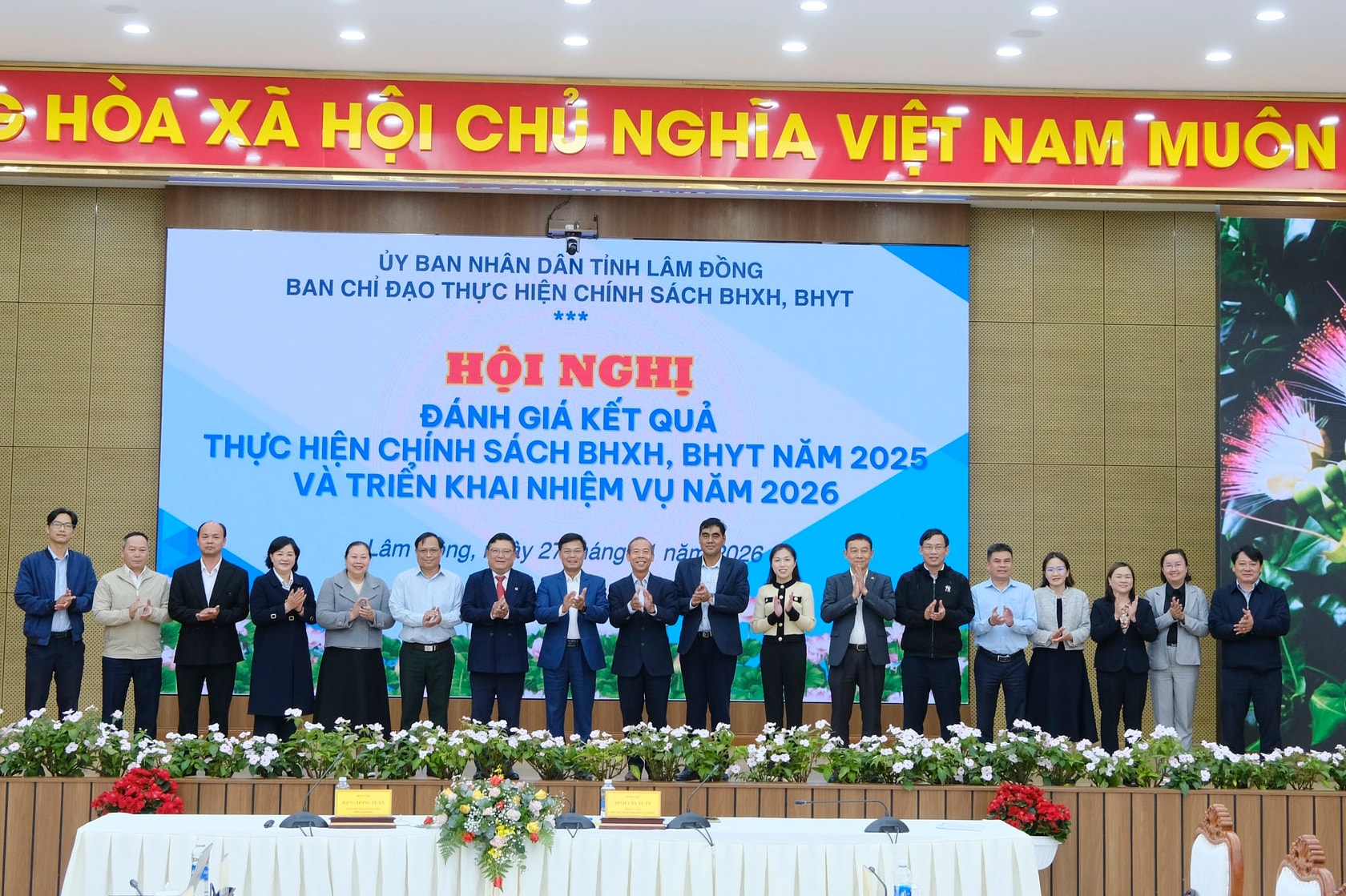 Các thành viên Ban Chỉ đạo thực hiện chính sách BHXH, BHYT tỉnh Lâm Đồng chụp ảnh lưu niệm