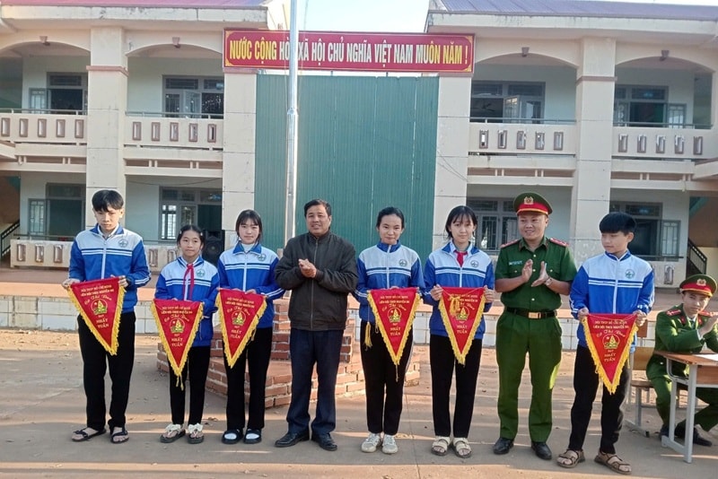Công an xã Quảng Khê trao cờ thi đua cho các lớp đạt thành tích cao trong tuần