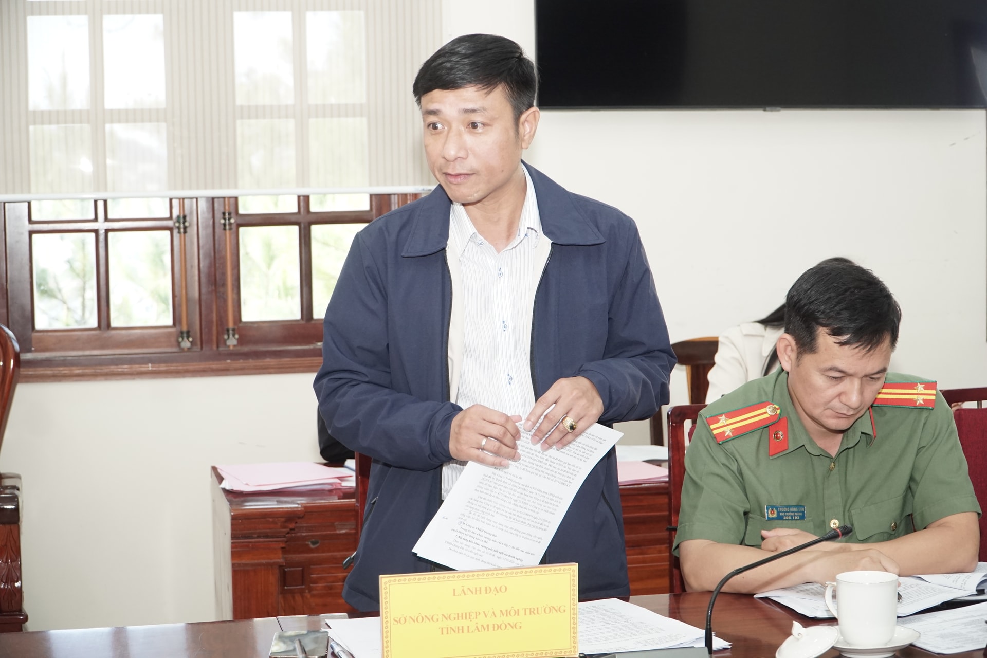 Lãnh đạo Sở Nông nghiệp và Môi trường báo cáo tại cuộc họp