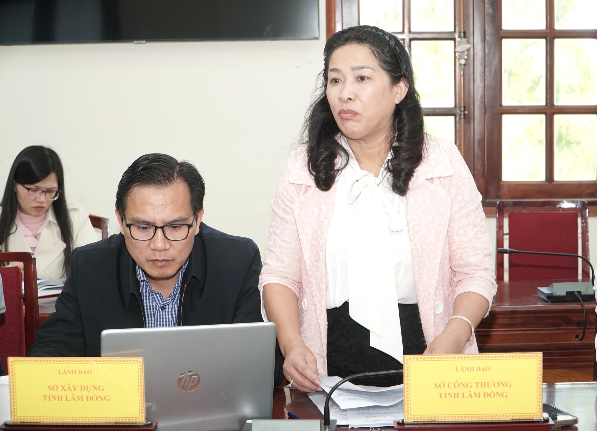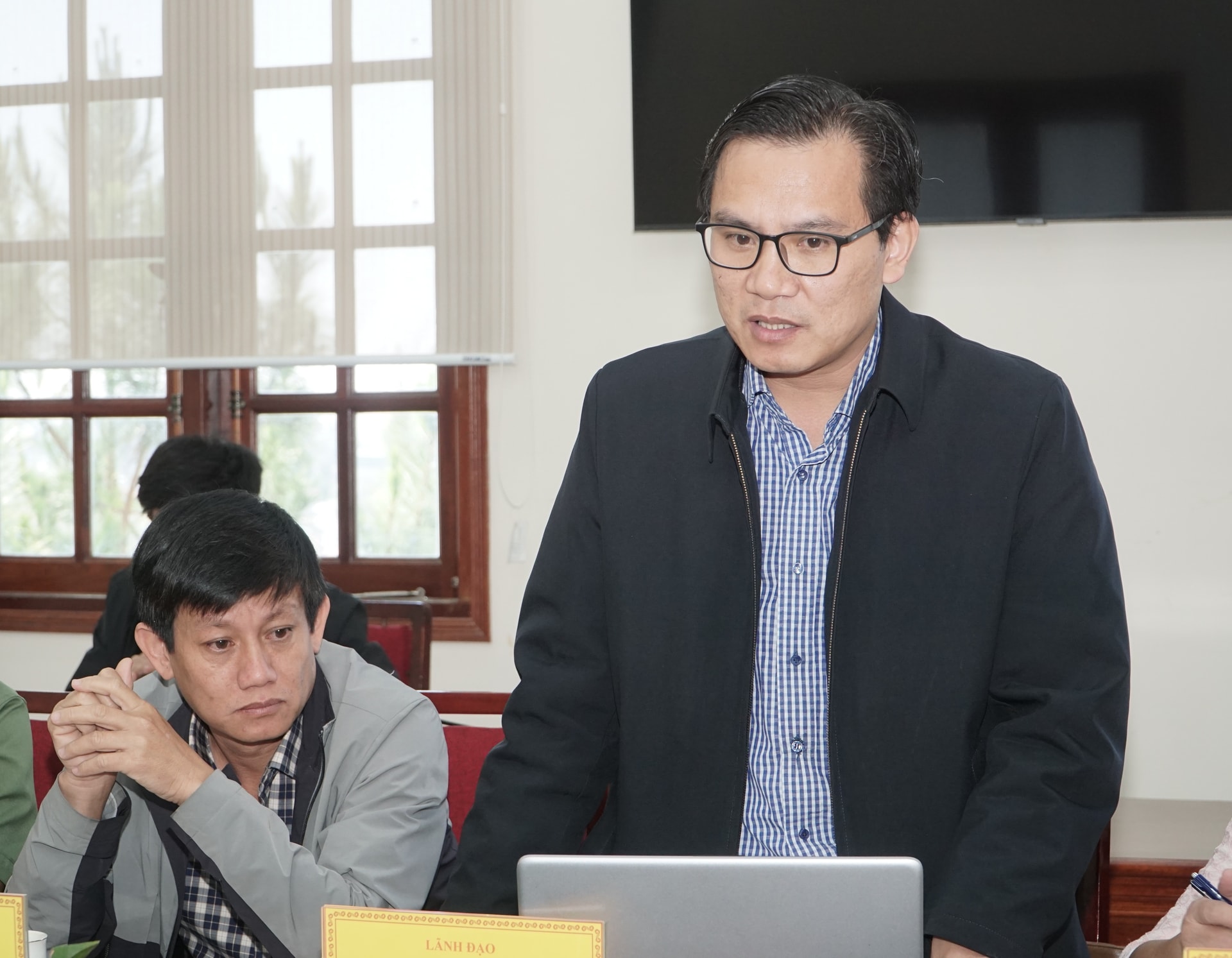 Lãnh đạo Sở Xây dựng báo cáo tại cuộc họp