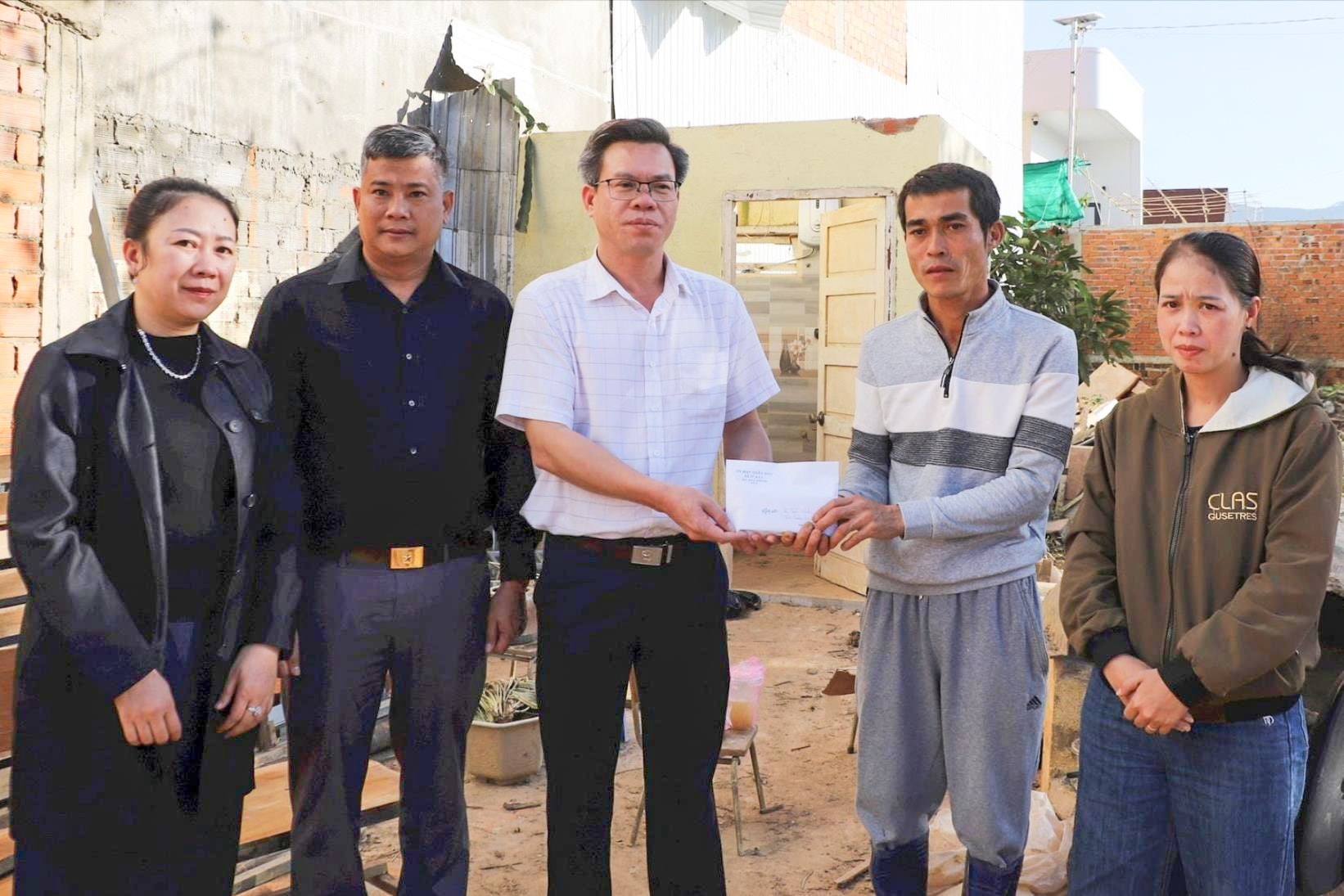 Bí thư Đảng ủy xã D’ran Nguyễn Văn Hữu trao kinh phí hỗ trợ cho hộ dân bị lũ cuốn mất nhà