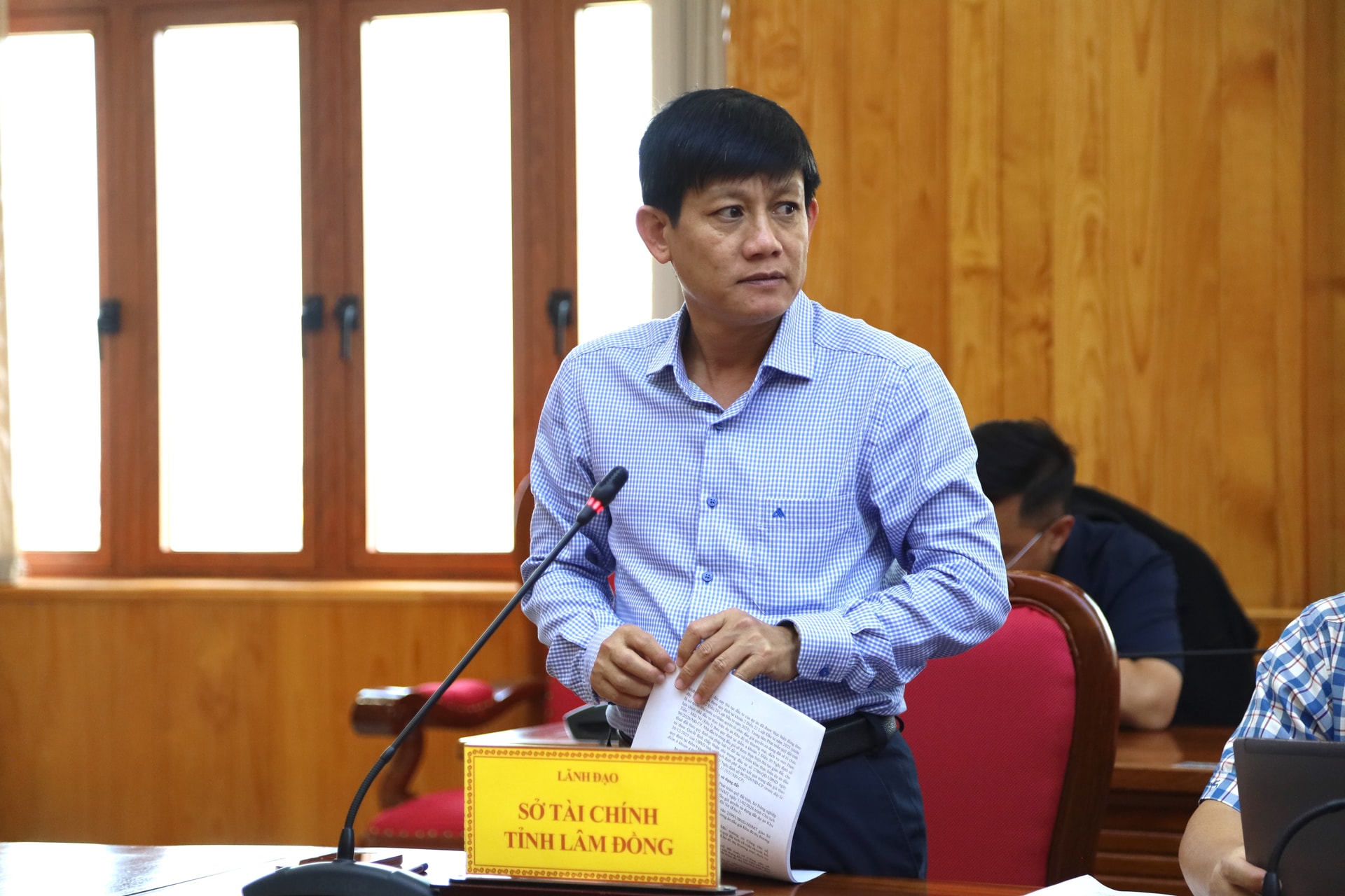 Đại diện Sở Tài chính báo cáo tình hình triển khai thực hiện các dự án đầu tư trọng điểm trên địa bàn khu vực Đông Nam Lâm Đồng (Bình Thuận cũ)