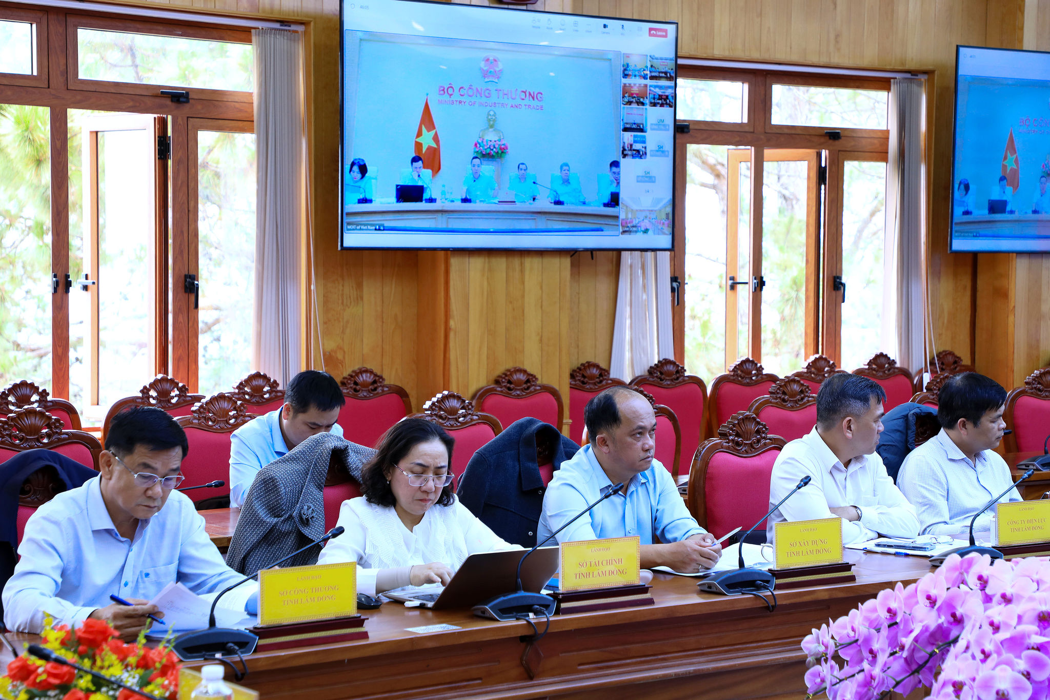 Lãnh đạo các sở, ngành của Lâm Đồng theo dõi cuộc họp do Bộ Công thương tổ chức chiều 20/4