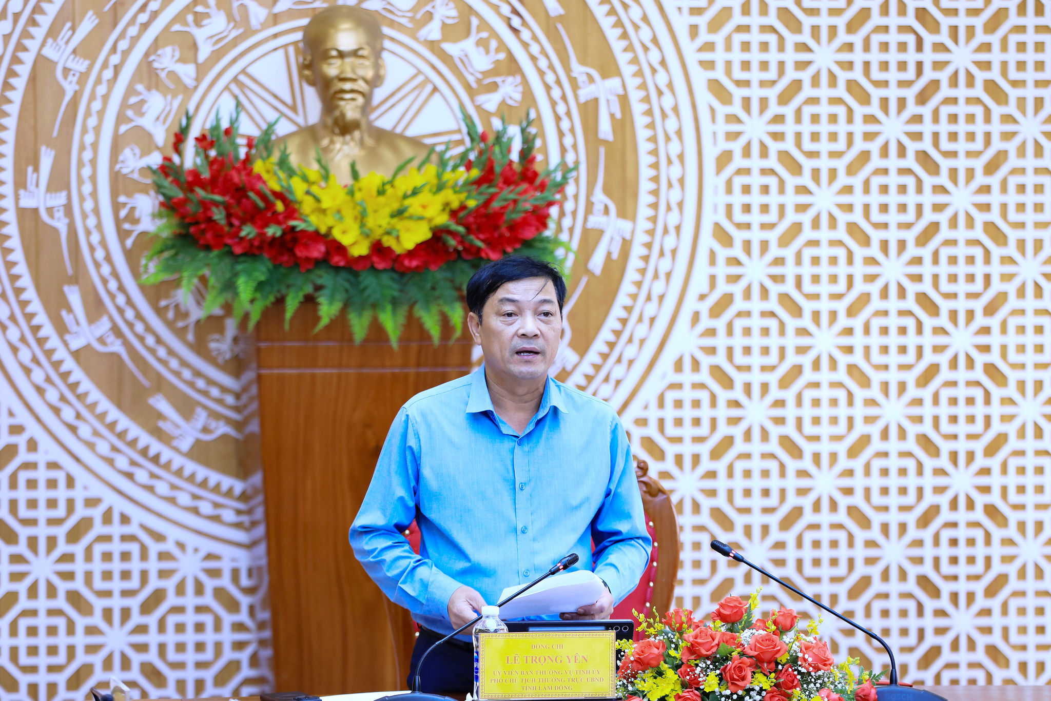 Phó Chủ tịch Thường trực UBND tỉnh Lâm Đồng Lê Trọng Yên chủ trì và phát biểu tại cuộc họp trực tuyến của Bộ Công thương với các địa phương để rà soát thực hiện nghị quyết về an ninh năng lượng