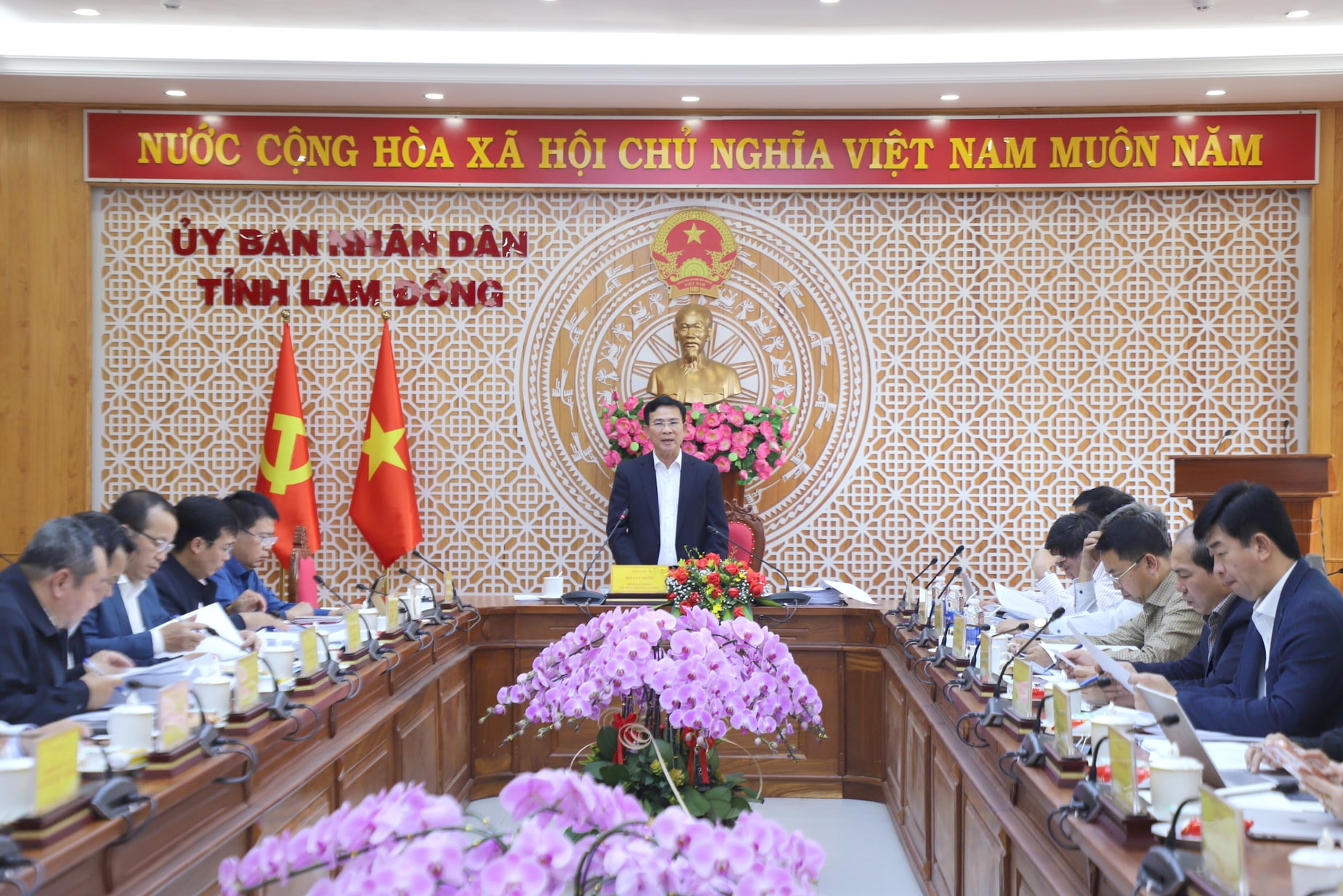 Đồng chí Hồ Văn Mười, Phó Bí thư Tỉnh ủy, Chủ tịch UBND tỉnh Lâm Đồng phát biểu kết luận cuộc họp