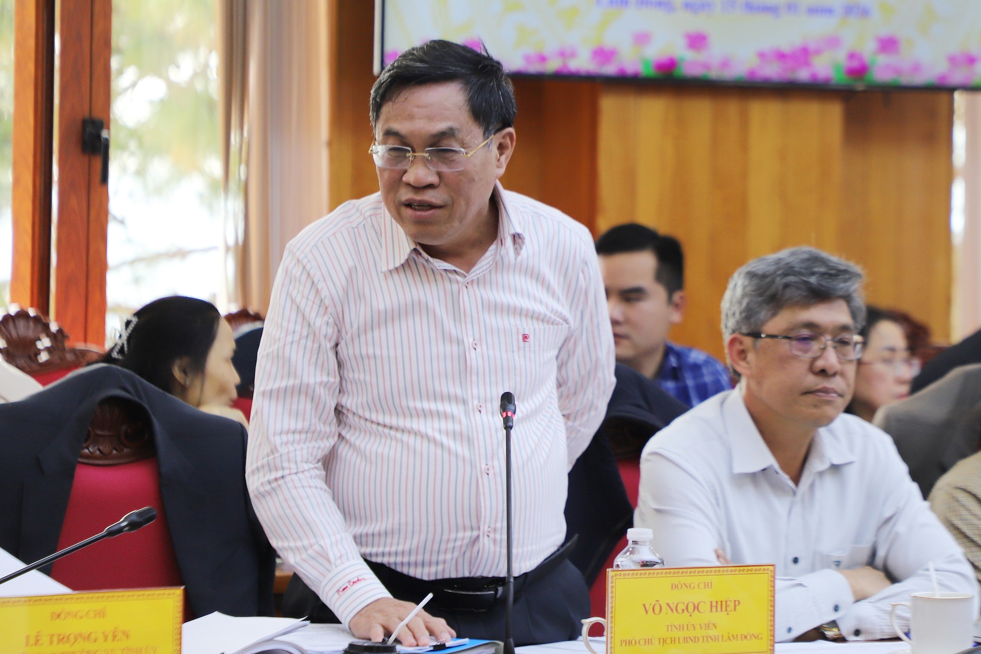 Phó Chủ tịch UBND tỉnh Lâm Đồng Võ Ngọc Hiệp nêu ý kiến tại cuộc họp