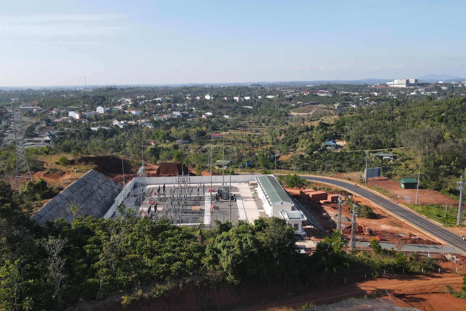 Khu vực xây dựng trạm biến áp với diện tích khoảng 7.300 m² đang được thi công tại phường Đông Gia Nghĩa