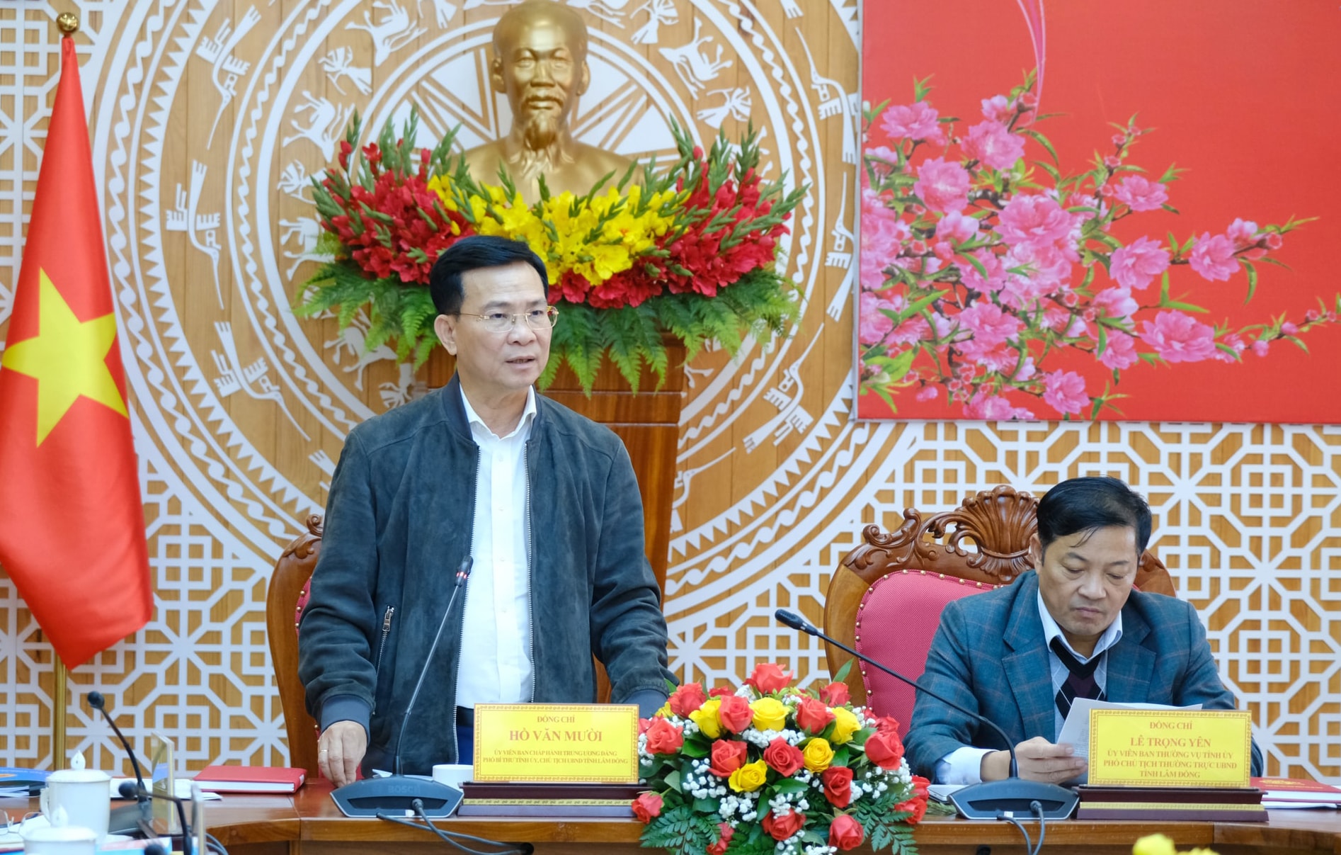 Đồng chí Hồ Văn Mười, Ủy viên Ban Chấp hành Trung ương Đảng, Phó Bí thư Tỉnh ủy, Chủ tịch UBND tỉnh Lâm Đồng và đồng chí Lê Trọng Yên, Ủy viên Ban Thường vụ Tỉnh ủy, Phó Chủ tịch Thường trực UBND tỉnh Lâm Đồng chủ trì buổi làm việc