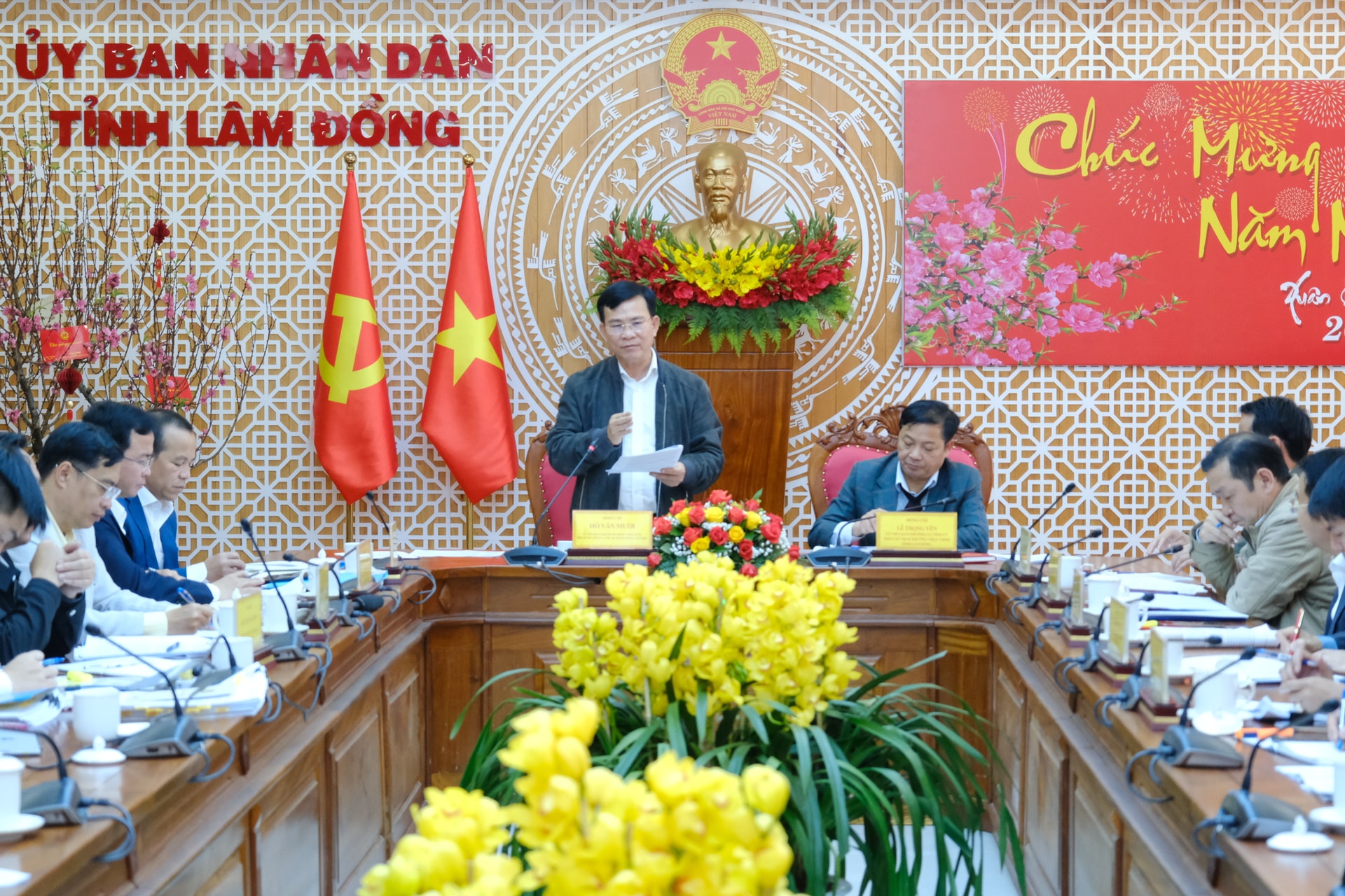 Đồng chí Hồ Văn Mười, Ủy viên Ban Chấp hành Trung ương Đảng, Phó Bí thư Tỉnh ủy, Chủ tịch UBND tỉnh Lâm Đồng phát biểu chỉ đạo tại buổi làm việc