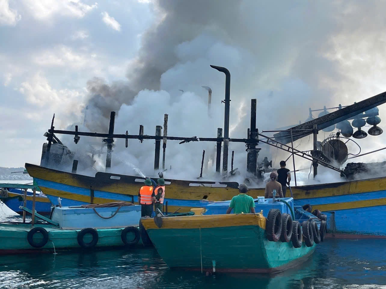 Khi phát hiện hỏa hoạn, 21 lao động trên tàu hoảng loạn, nhảy xuống biển thoát thân. Nhận tin báo, lực lượng biên phòng nhanh chóng tiếp cận hiện trường, kịp thời cứu vớt toàn bộ thuyền viên, đưa vào bờ an toàn.