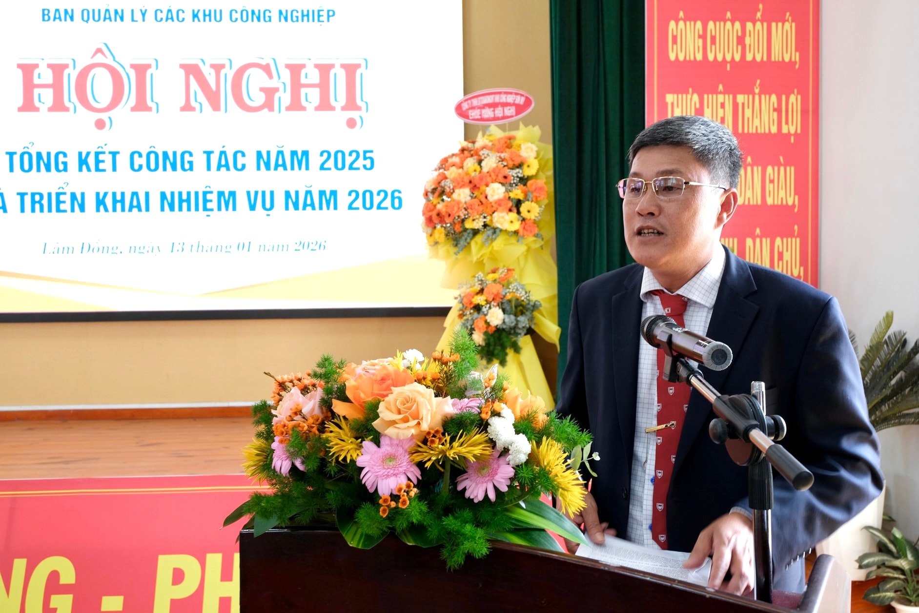 Phó Trưởng Ban Quản lý các KCN Lâm Đồng Lê Hải Ninh báo cáo công tác năm 2025