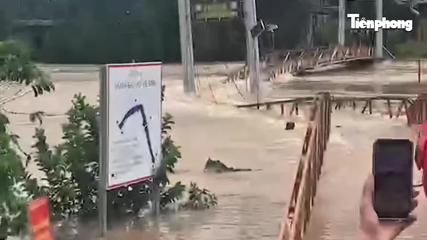 Nước lũ cuốn trôi cây cầu treo nối hai thôn ở xã Ninh Gia, Lâm Đồng.