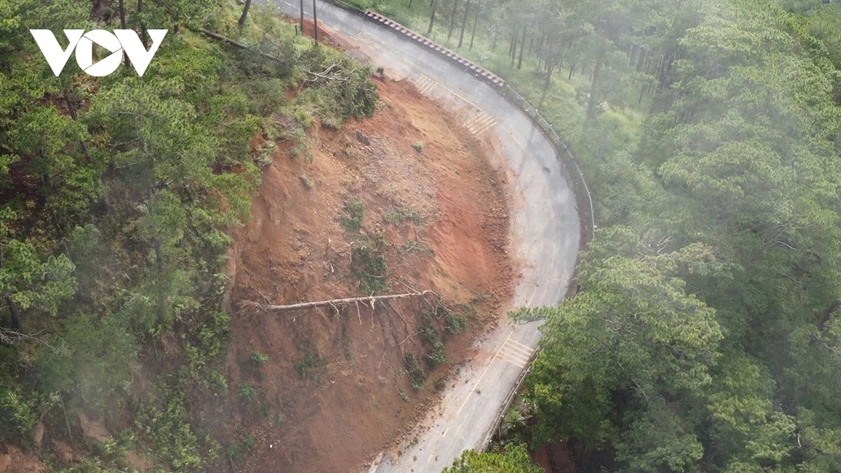 Sạt lở phải cấm đường trên đèo D’ran- Quốc lộ 20 đoạn qua phường Xuân Trường – Đà Lạt, tỉnh Lâm Đồng.