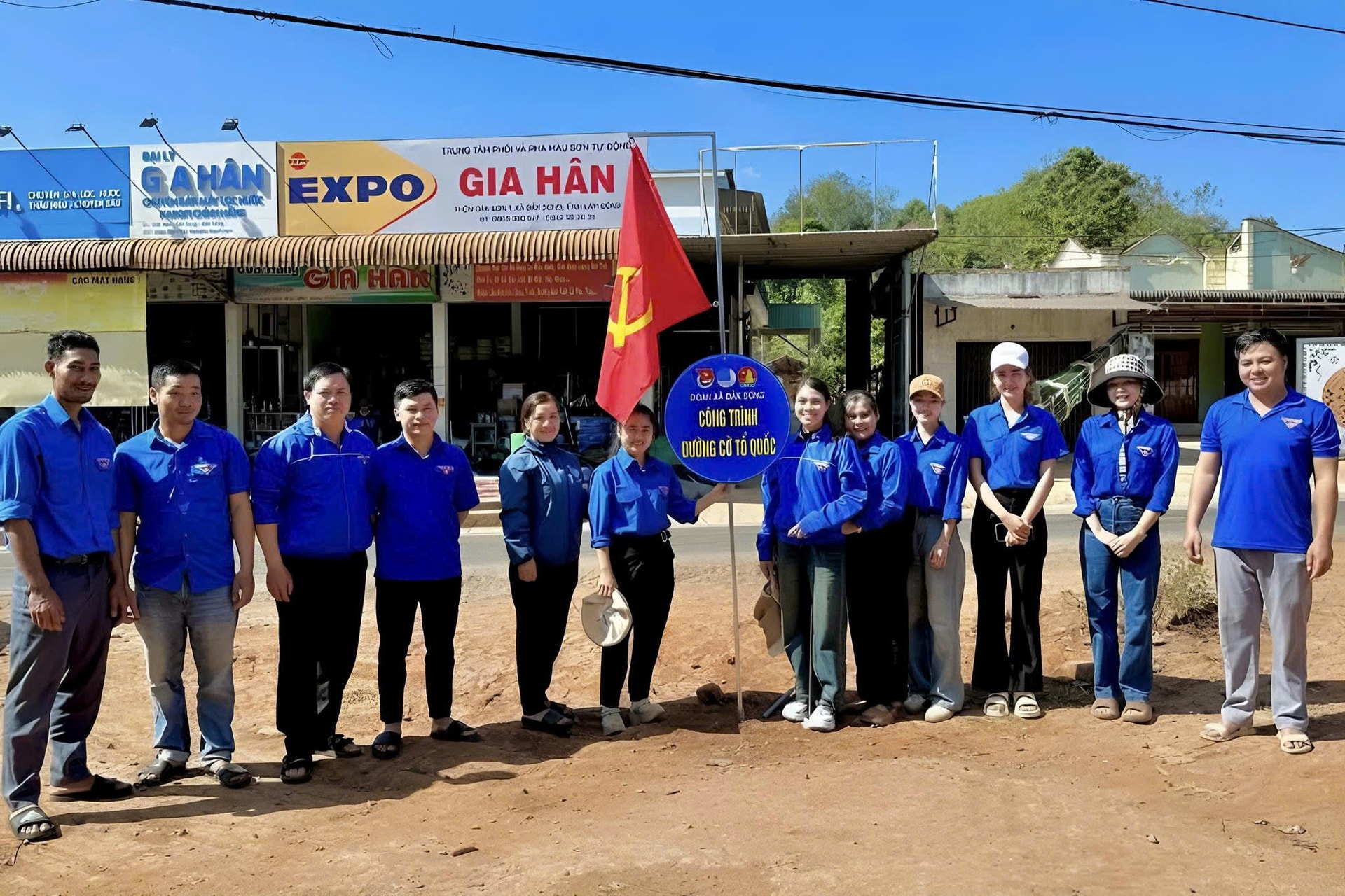 Thiết thực chào mừng Đại hội Đảng toàn quốc, Đoàn xã Đắk Song, tỉnh Lâm Đồng triển khai công trình đường cờ Tổ quốc trên trục đường chính của thôn Đắk Sơn 1