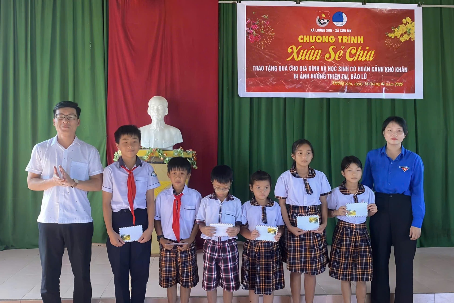 Đoàn xã Lương Sơn, Đoàn xã Sơn Mỹ, tỉnh Lâm Đồng phối hợp tổ chức chương trình Xuân sẻ chia trao tặng 25 suất quà, trị giá 1 triệu đồng/suất cho học sinh khó khăn xã Lương Sơn