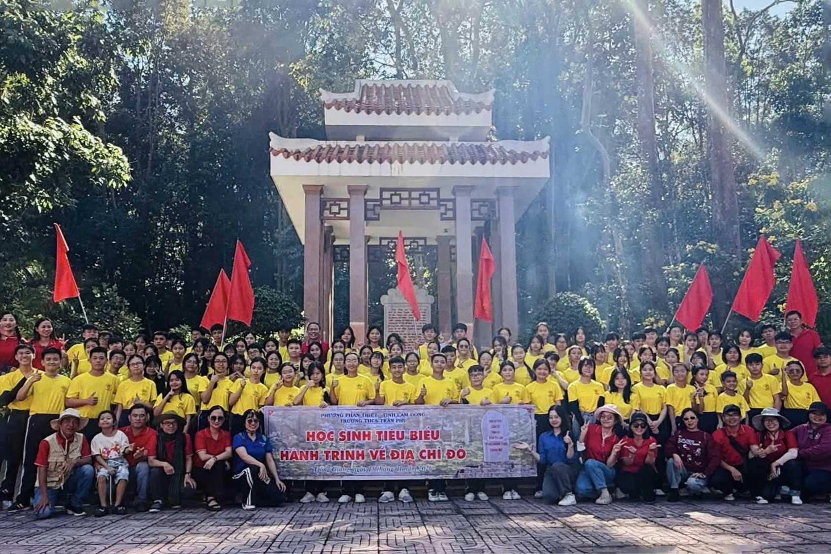 Liên đội Trường THCS Trần Phú, phường Phan Thiết, tỉnh Lâm Đồng tổ chức hành trình về “Địa chỉ đỏ” tìm hiểu về Khu di tích căn cứ Tỉnh ủy Bình Thuận - Sa Lôn, xã Đông Giang, tỉnh Lâm Đồng