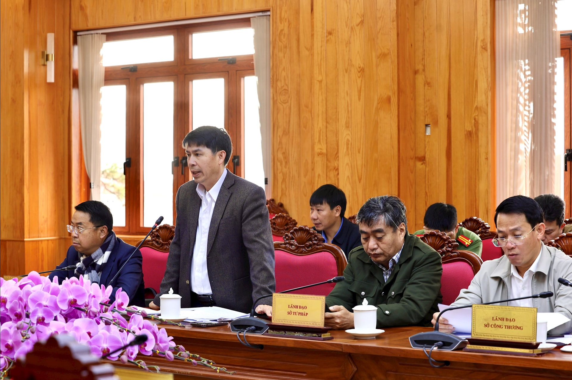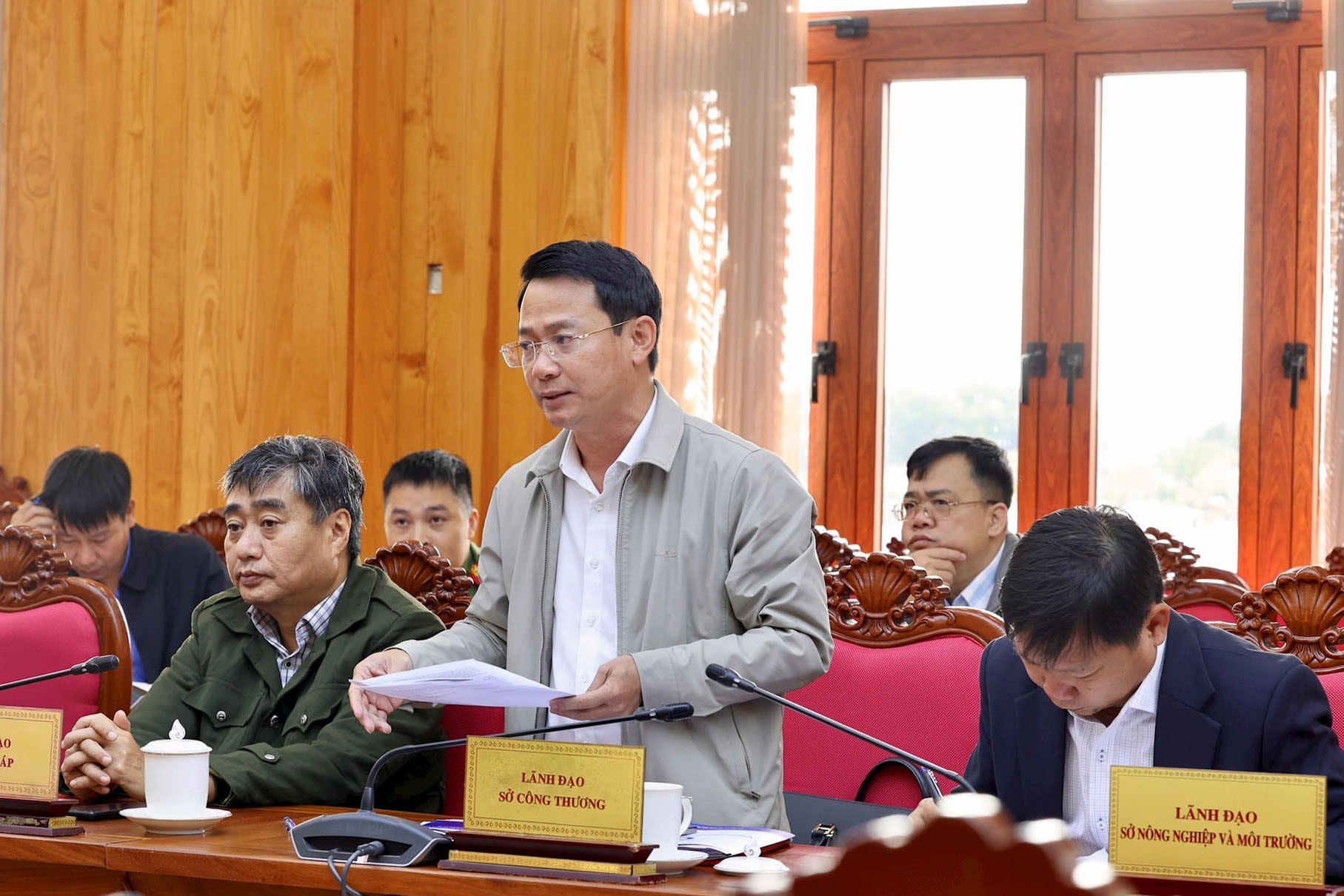 Ông Lê Bình Minh, Phó Giám đốc Sở Tài chính, báo cáo tình hình thực hiện các nội dung liên quan đến chủ trương đầu tư các dự án nhà máy chế biến alumin