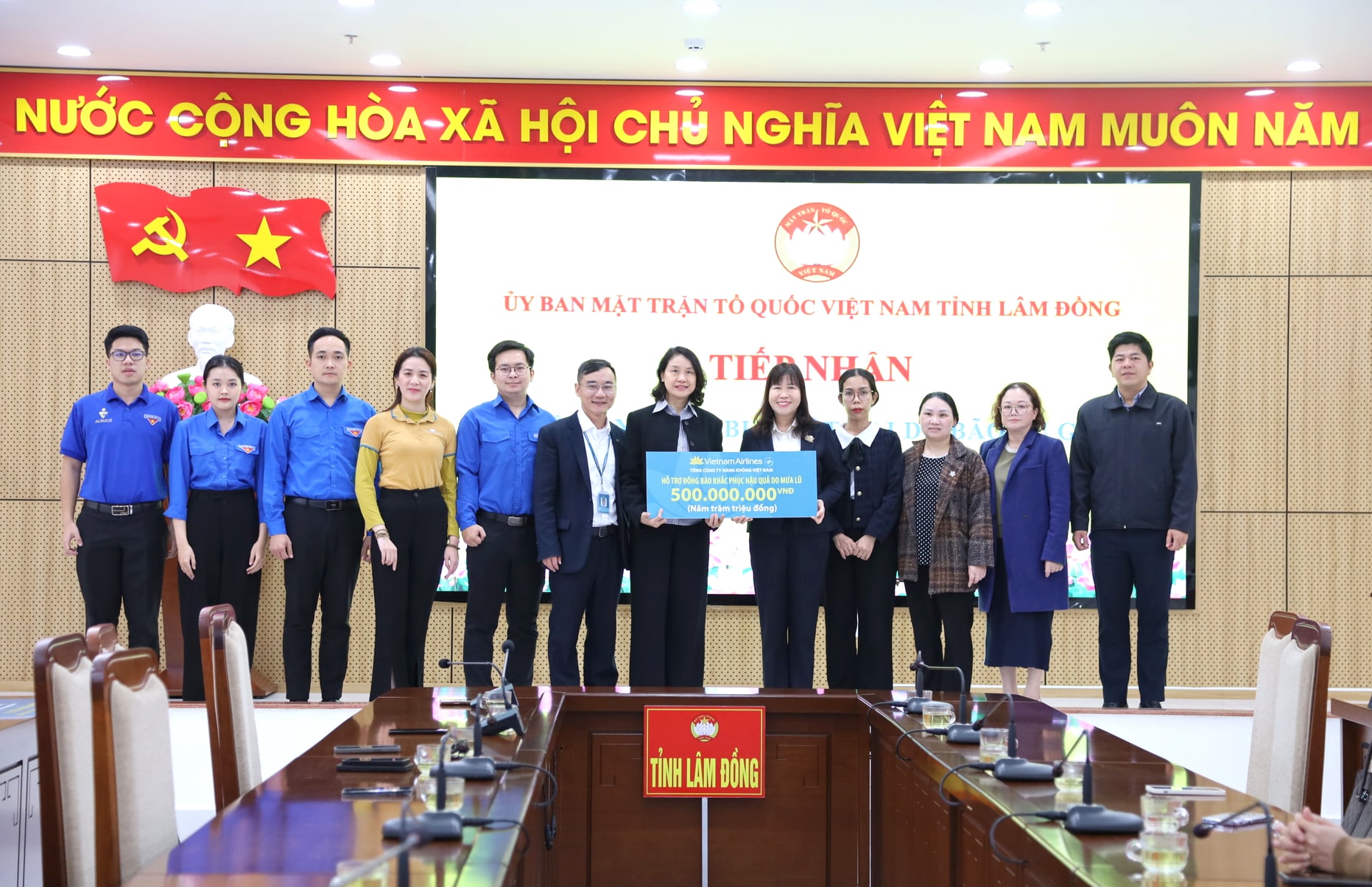 Vietnam Airlines trao tặng số tiền 500 triệu đồng hỗ trợ tỉnh Lâm Đồng khắc phục hậu quả thiên tai