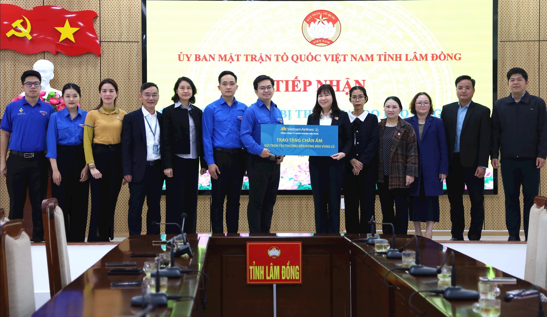 Tại buổi tiếp nhận, Vietnam Airlines đã trao tặng số tiền 500 triệu đồng, Đoàn Thanh niên Tổng Công ty trao tặng 1.000 chiếc chăn để chia sẻ khó khăn với các địa phương, người dân chịu ảnh hưởng nặng nề bởi mưa lũ gây ra.
