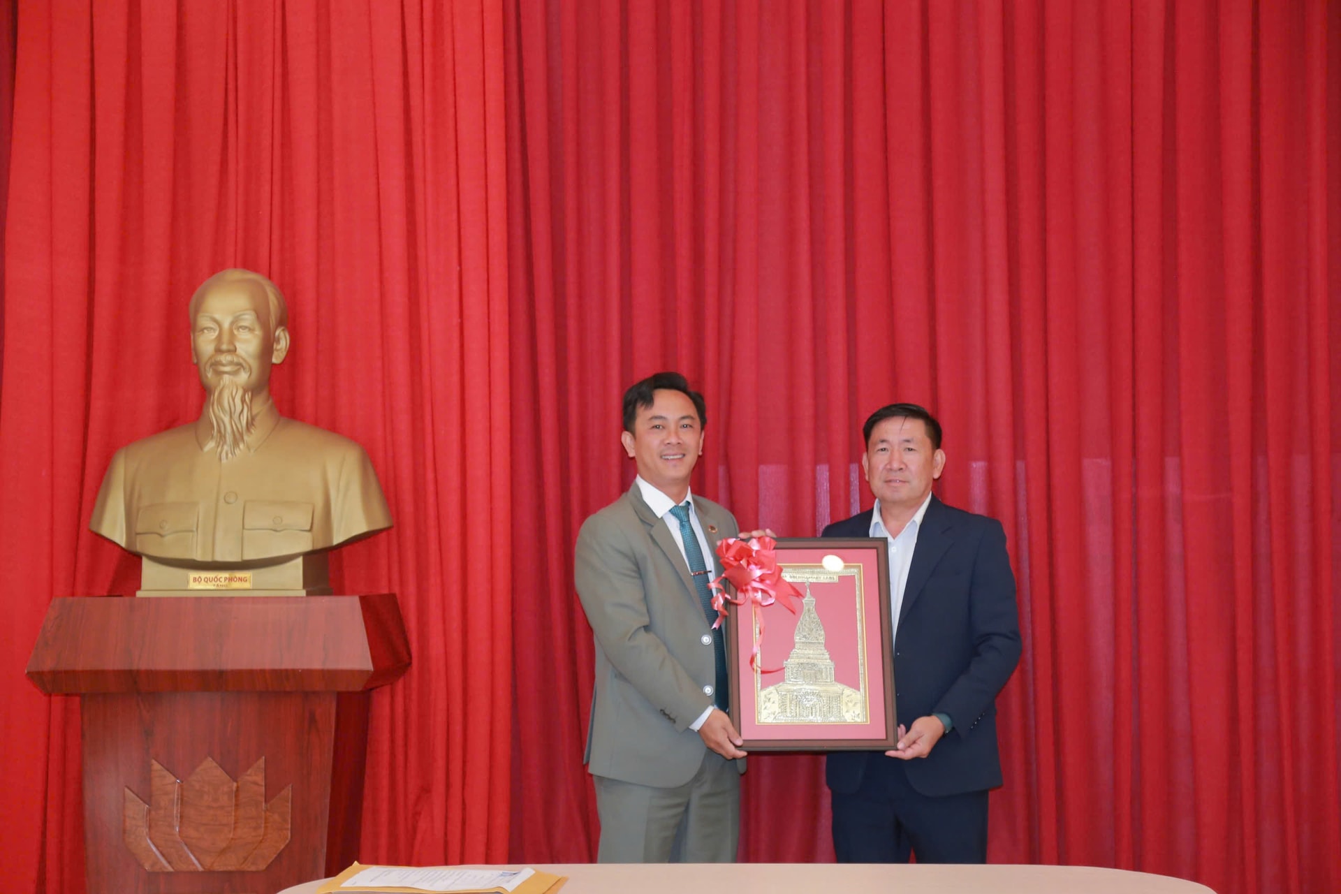 Lãnh đạo Sở Giáo dục và Thể thao tỉnh Bolykhamxay tặng quà lưu niệm cho Sở GD&ĐT Lâm Đồng