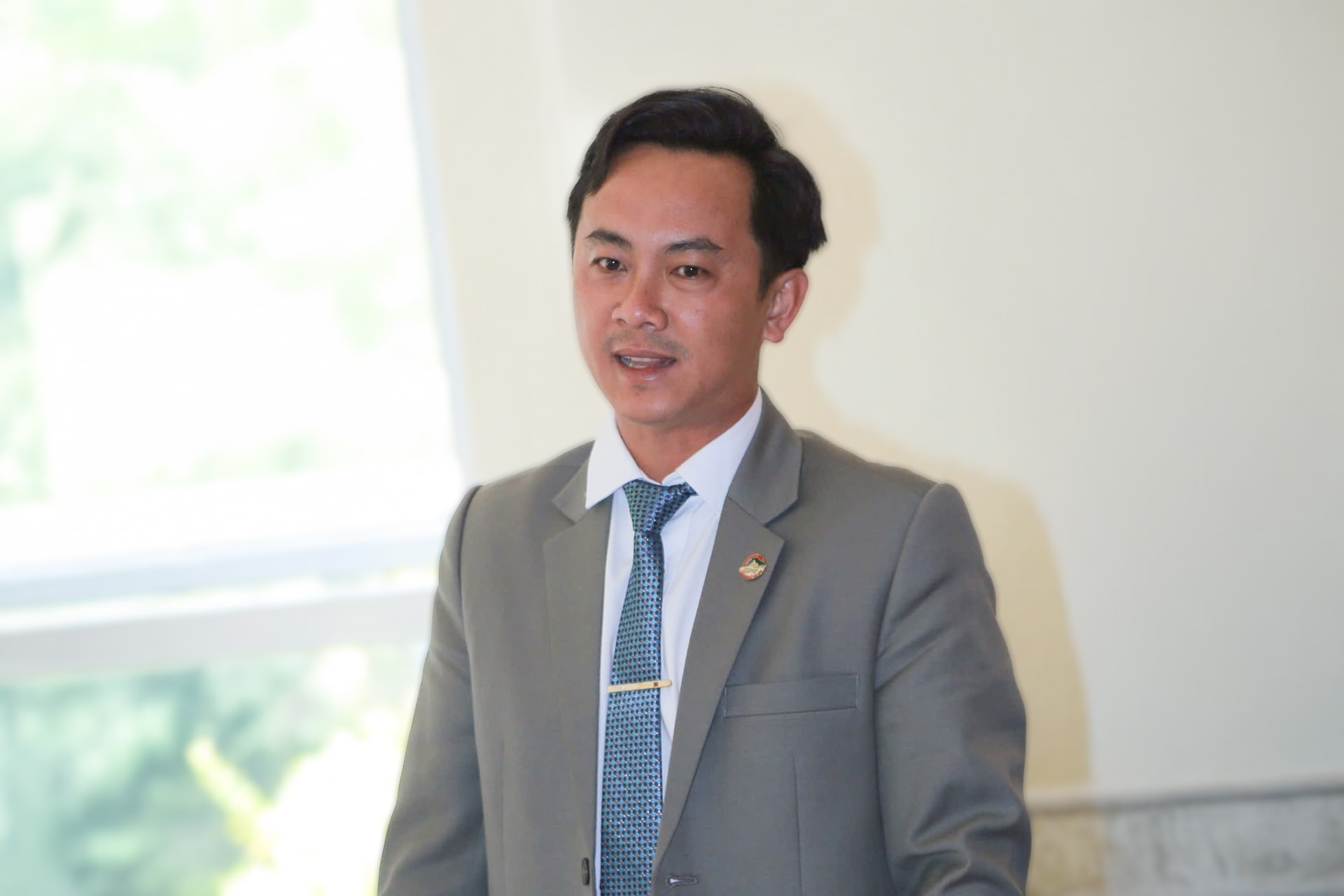 Ông Đao Hương Kong Sốm Bắt, Phó Giám đốc Sở Giáo dục và Thể thao tỉnh Bolykhamxay phát biểu tại lễ bàn giao lưu học sinh