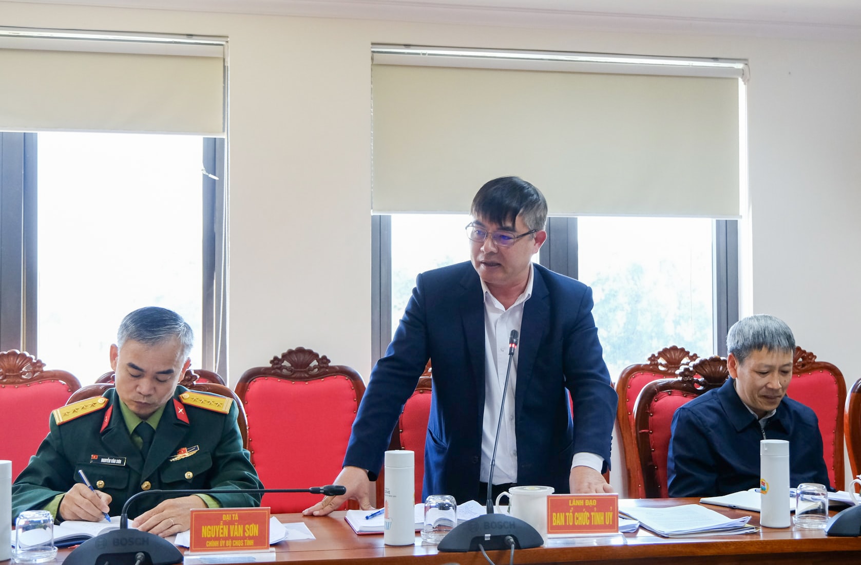 Đại tá Đinh Hồng Tiếng, Ủy viên Ban Thường vụ Tỉnh ủy, Chỉ huy trưởng Bộ CHQS tỉnh chủ trì buổi làm việc