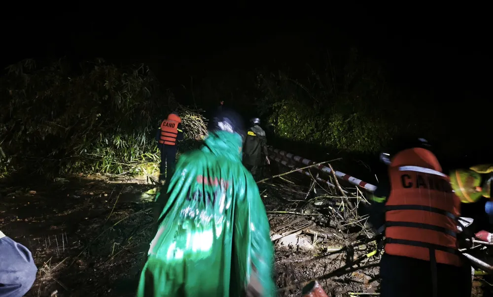 Lực lượng công an tìm kiếm nạn nhân xuyên đêm.