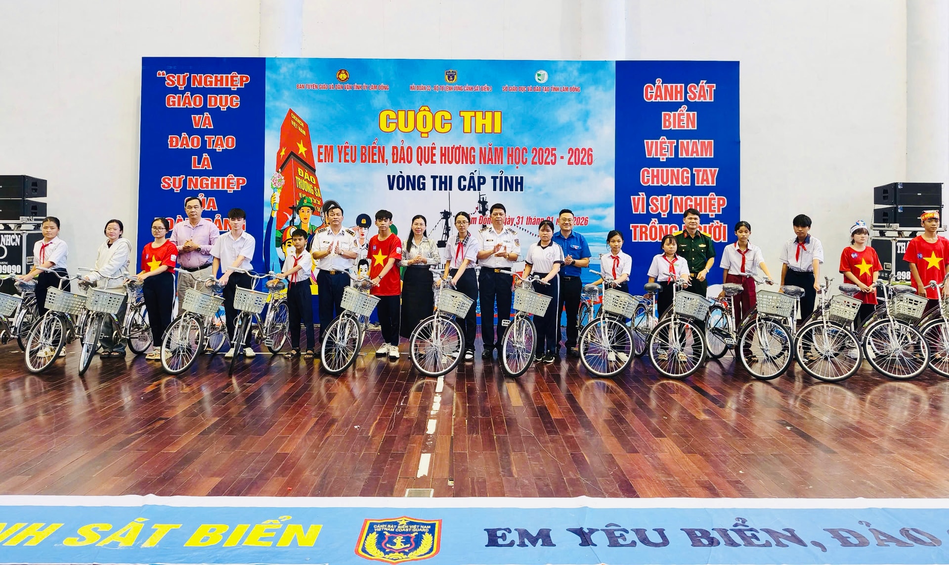 Nhân dịp này, Hải đoàn 32, Bộ Tư lệnh Vùng Cảnh sát biển 3 đã trao tặng 15 chiếc xe đạp và 20 suất học bổng cho các em học sinh có hoàn cảnh khó khăn, vươn lên trong học tập của tỉnh Lâm Đồng.