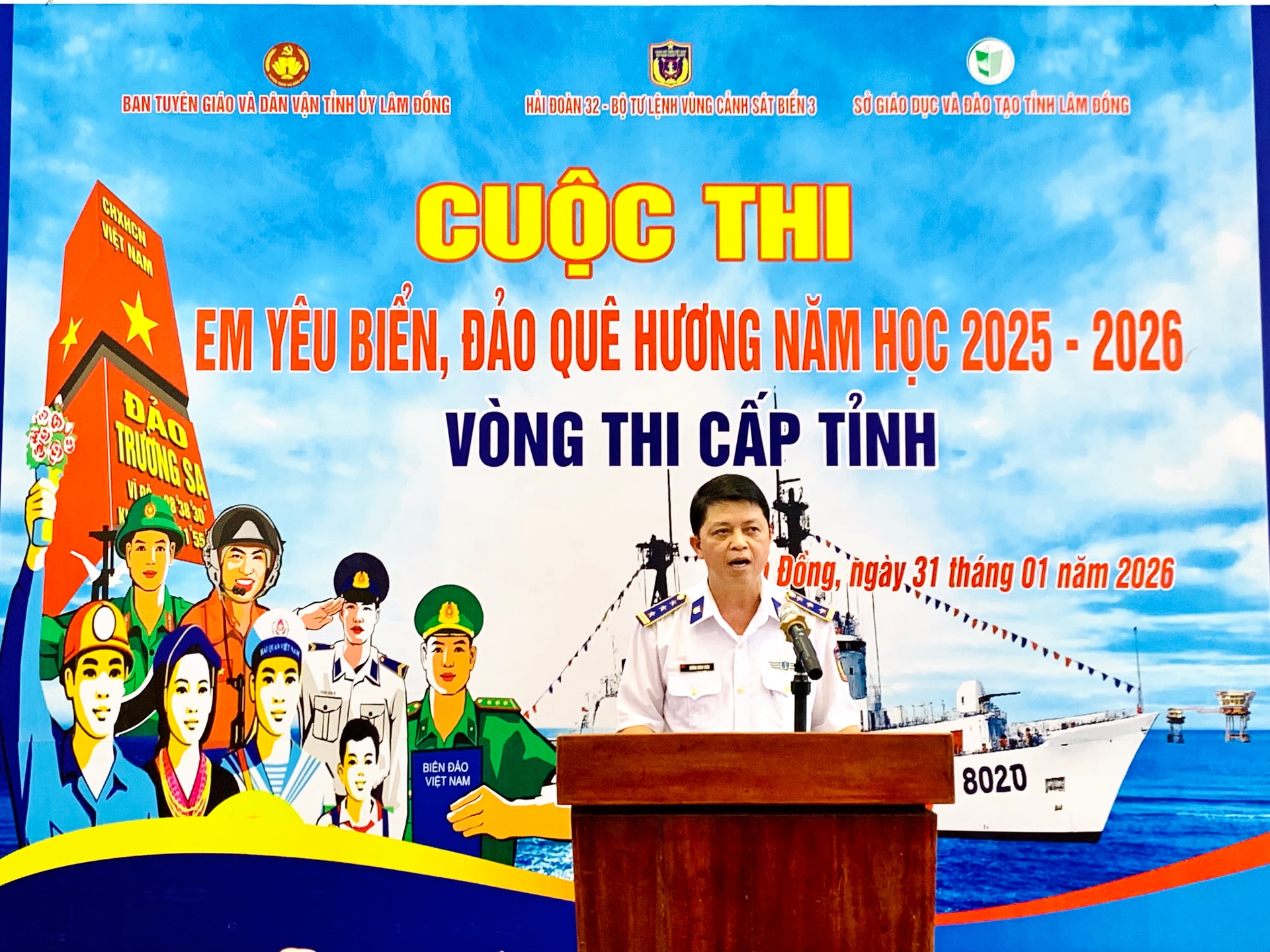 Phát biểu tại cuộc thi, Thượng tá Dương Minh Châu, Phó Chính ủy Hải đoàn 32, Trưởng ban Tổ chức cho biết, Cuộc thi “Em yêu biển đảo quê hương” góp phần nâng cao hiểu biết cho học sinh tỉnh Lâm Đồng về biển, đảo Việt Nam, pháp luật và các điều ước quốc tế liên quan.