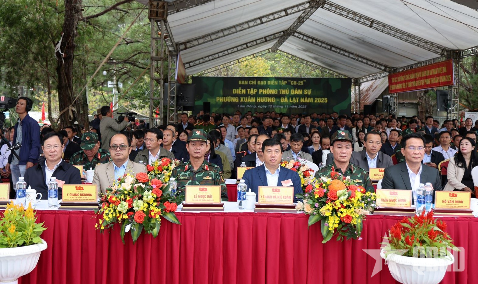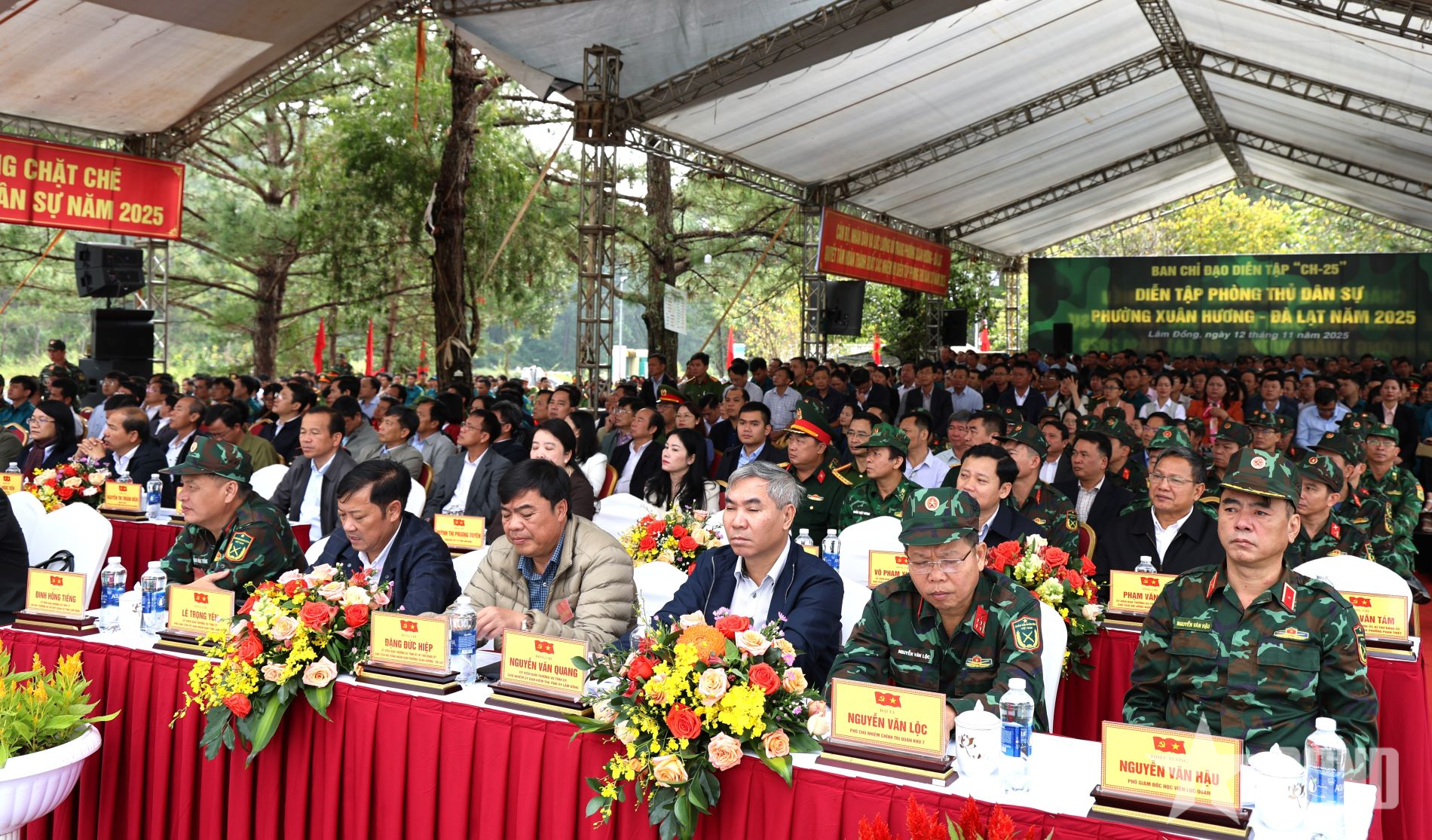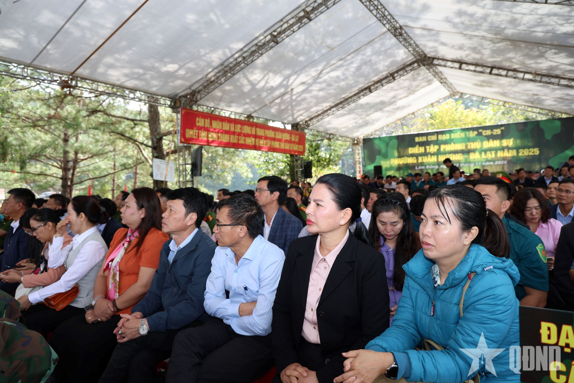 Dự buổi diễn tập có các đồng chí: Thiếu tướng Trần Ngọc Minh, Phó tư lệnh Quân khu 7; Thiếu tướng Lê Ngọc Hải, Phó tham mưu trưởng Quân khu 7; Y Thanh Hà Niê Kđăm, Bí thư Tỉnh ủy Lâm Đồng; Hồ Văn Mười, Chủ tịch UBND tỉnh Lâm Đồng cùng đại diện lãnh đạo các sở, ban, ngành và 124 xã, phường, đặc khu trong toàn tỉnh.