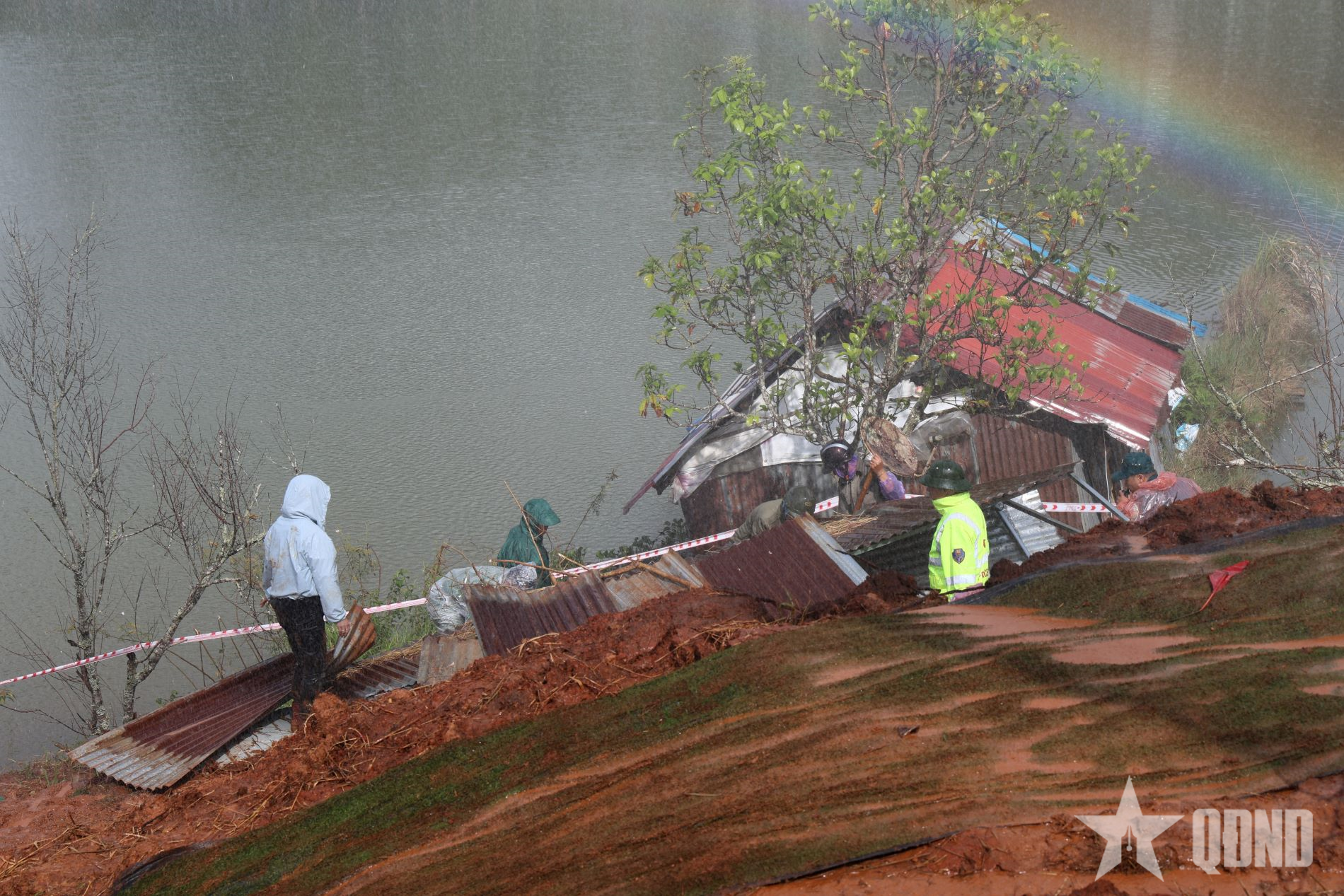 Sơ tán tài sản của người dân khu vực sạt lở đến nơi an toàn.