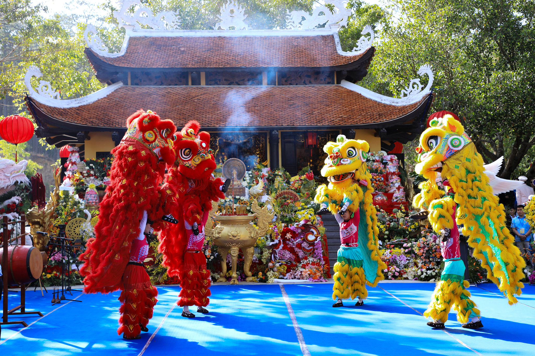 Tiết mục múa lân mở màn Lễ hội Giỗ Tổ Hùng Vương năm 2026 tại Đền thờ Âu Lạc, tỉnh Lâm Đồng