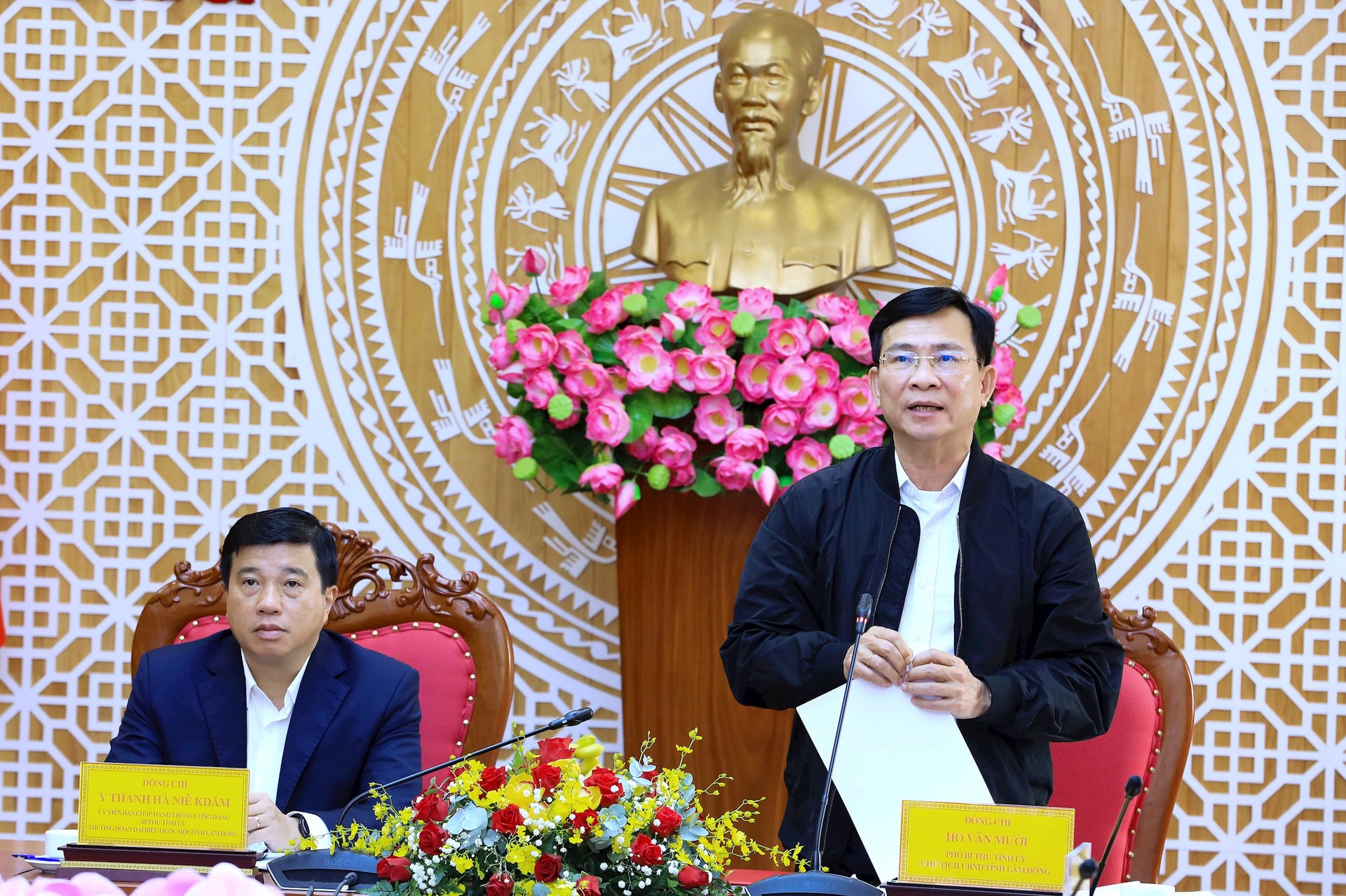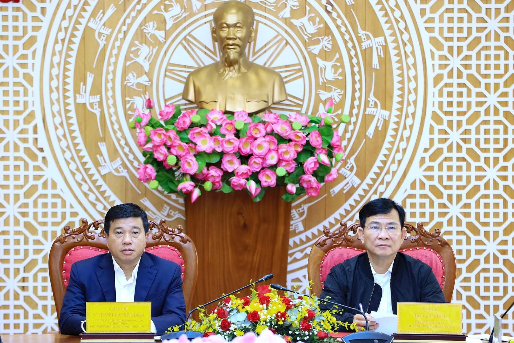 Bí thư Tỉnh ủy Lâm Đồng Y Thanh Hà Niê Kđăm và Chủ tịch UBND tỉnh Lâm Đồng Hồ Văn Mười tham dự cuộc họp