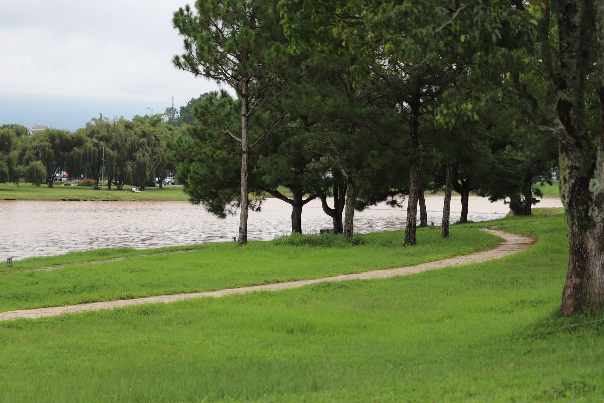 Bao quanh hồ là hệ thống cây xanh, thảm cỏ và đường dạo bộ được quy hoạch hài hòa, tạo nên không gian sinh thái đặc trưng của đô thị Đà Lạt