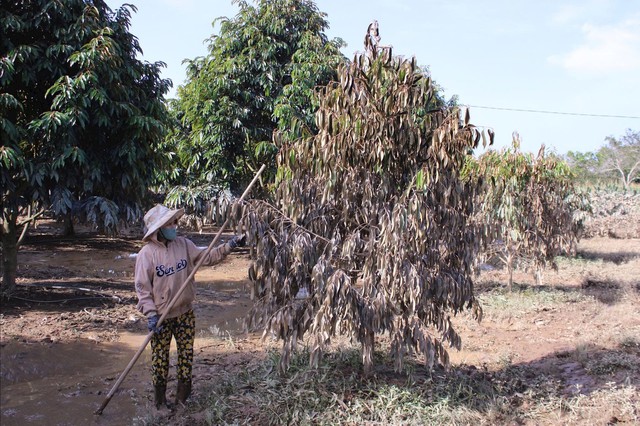 Nhiều diện tích sầu riêng của người dân bị ảnh hưởng do mưa lũ. Ảnh Báo Lâm Đồng.