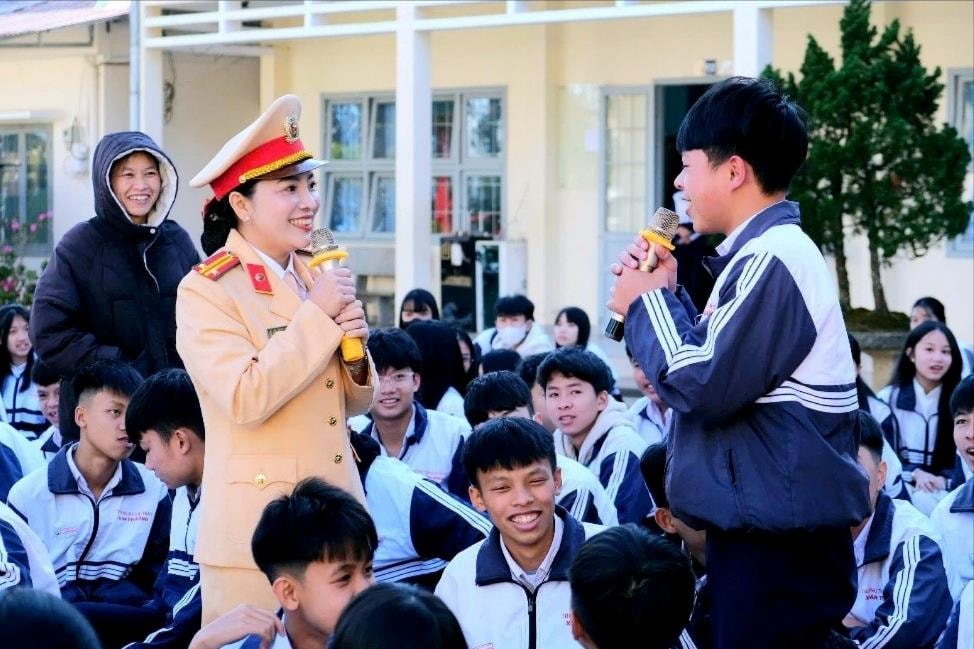 Với hình thức tuyên truyền sinh động, trực quan, dễ hiểu, các em học sinh tích cực tham gia trao đổi, trả lời câu hỏi, xử lý tình huống giao thông giả định, qua đó nâng cao khả năng tiếp thu kiến thức pháp luật và kỹ năng tham gia giao thông an toàn.