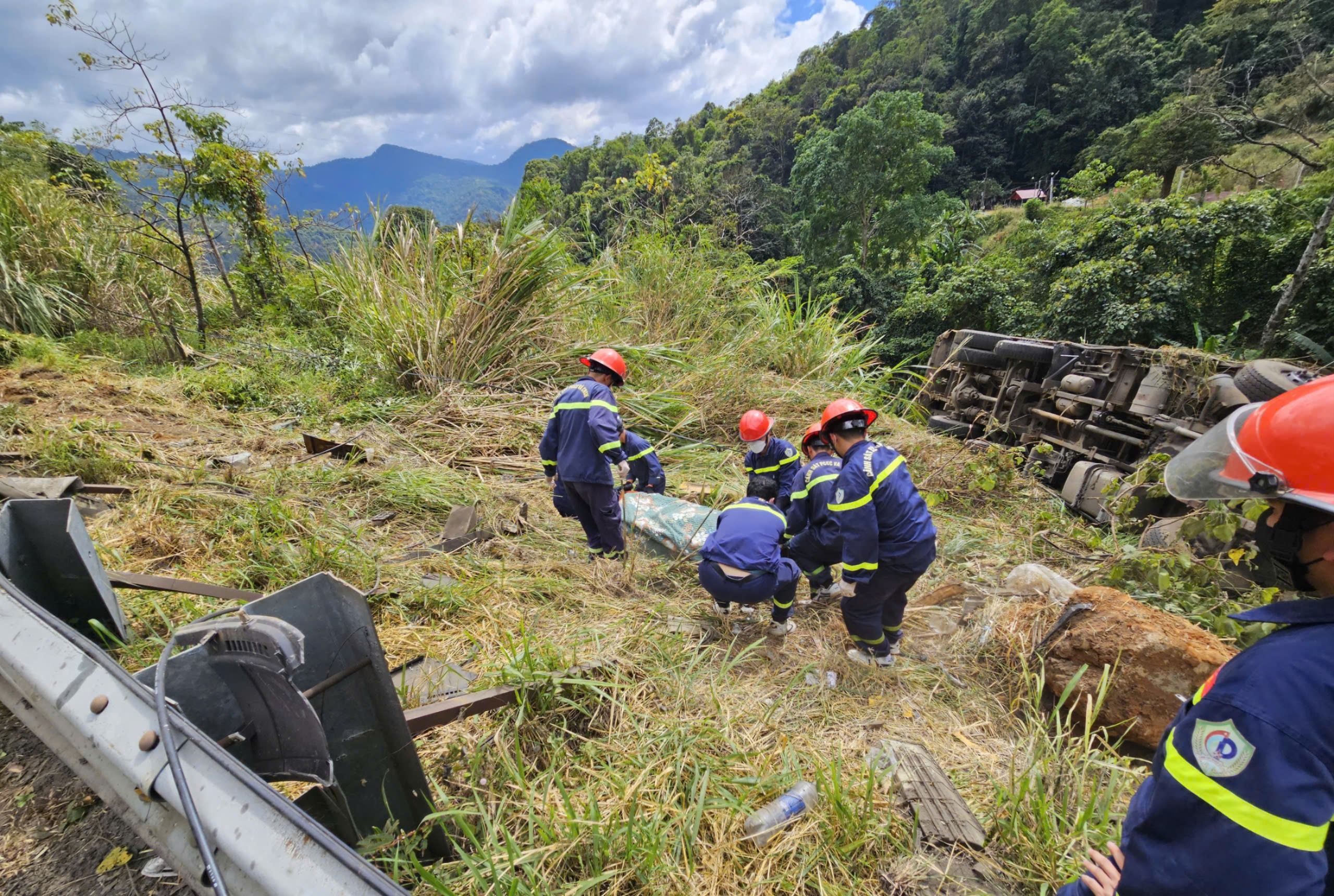 Tại hiện trường, xe tải nằm sâu dưới vực khoảng 5m, hư hỏng nặng, tài xế Lê Hữu Thịnh tử vong, mắc kẹt trong xe, phụ xe Lê Văn Tuệ bị thương, được người dân đưa đi cấp cứu tại Bệnh viện II Lâm Đồng.