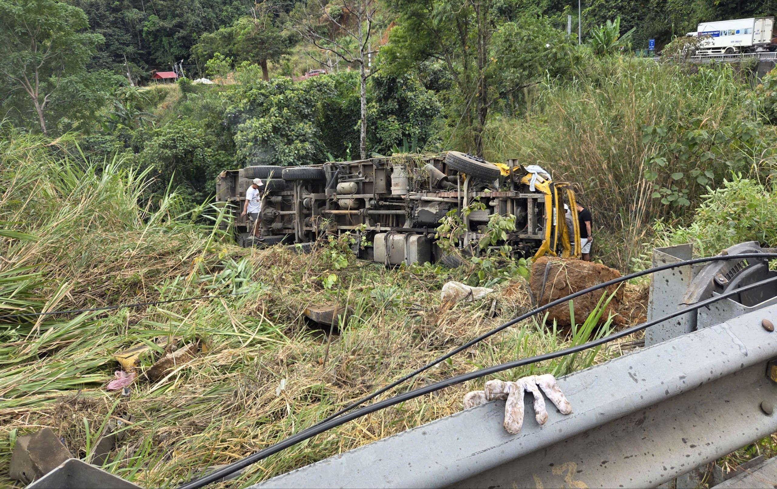 Xe tải hư hỏng nặng sau khi rơi xuống đèo Bảo Lộc