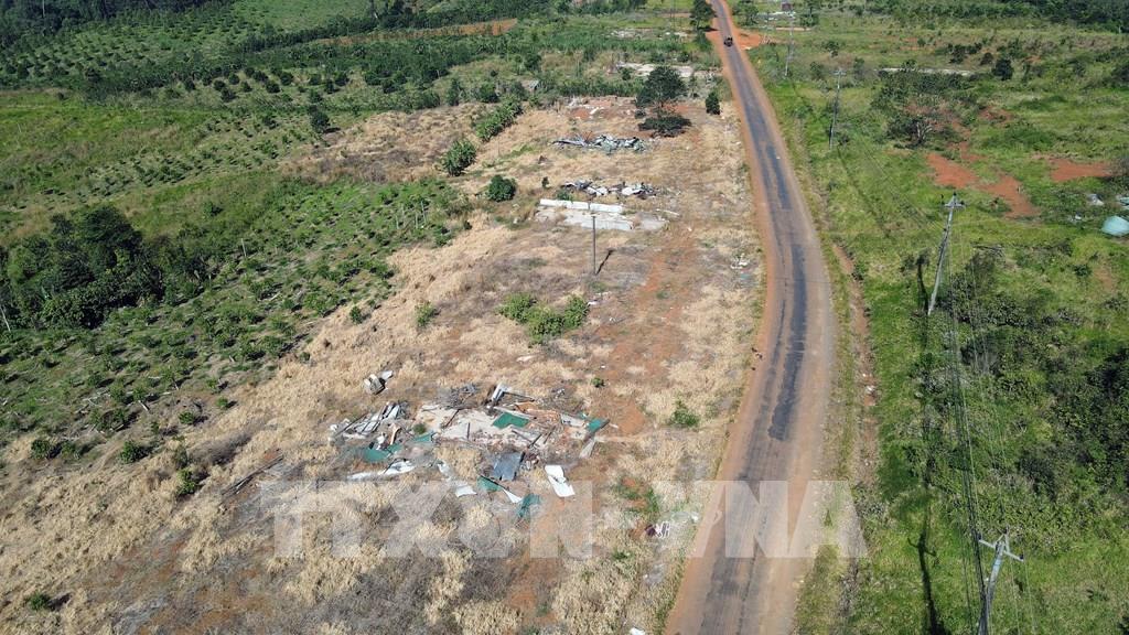 Ngành chức năng tỉnh Đắk Nông cũ đã cưỡng chế tháo dỡ nhà cửa của các hộ dân lấn, chiếm đất trái phép. Ảnh: Hưng Thịnh – TTXVN