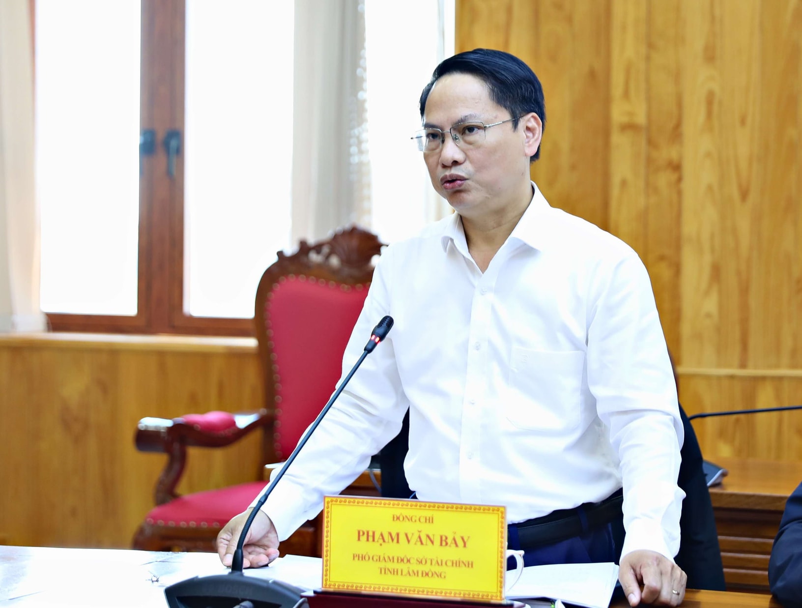 Phó Giám đốc Sở Tài chính Phạm Văn Bảy báo cáo tiến độ kiểm kê tài sản công của các sở, ngành, địa phương